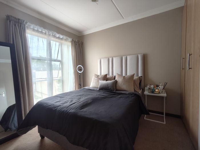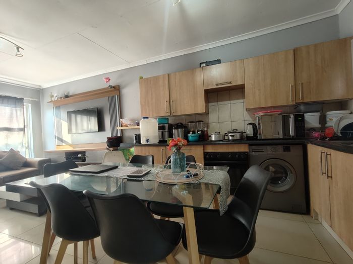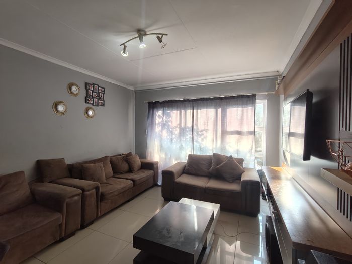 Townhouse in Geelhoutpark Ext 6: 3 bedrooms, 1.5 bathrooms, 84 m², air-conditioned lounge, kitchen, and 2 garages.