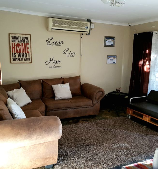 Relaxed family living with a communal garden and secure walled grounds in Geelhoutpark, Rustenburg — three bedrooms, one bathroom and covered parking for easy daily life.