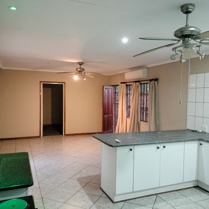 Light-filled family home in Geelhoutpark with open-plan kitchen and lounge, JoJo water backup and pet-friendly garden; three bedrooms, two bathrooms and two covered parking.