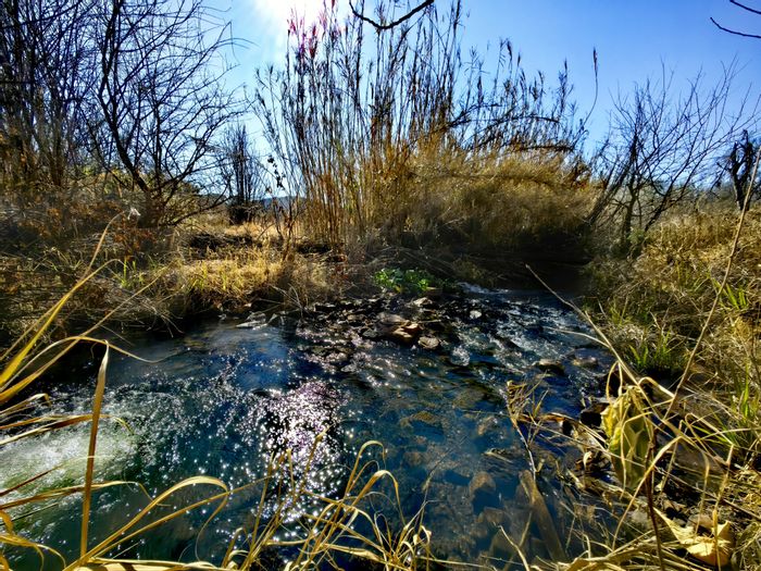 Riverside country lifestyle 27 km from Rustenburg — perfect for small-scale farming or a riverside restaurant. Includes irrigated fields, borehole, cozy two-bedroom house and worker accommodation.