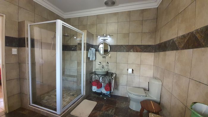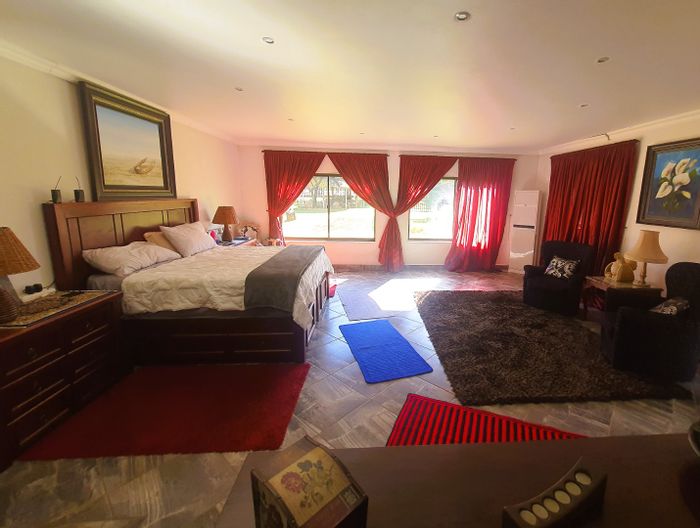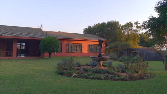 5-bedroom, 5-bathroom luxury farm property on 2 ha with 4 garages, pool, jacuzzi, and security features.