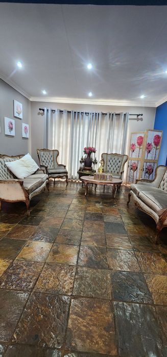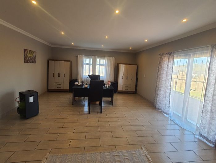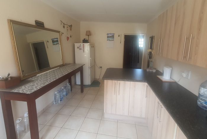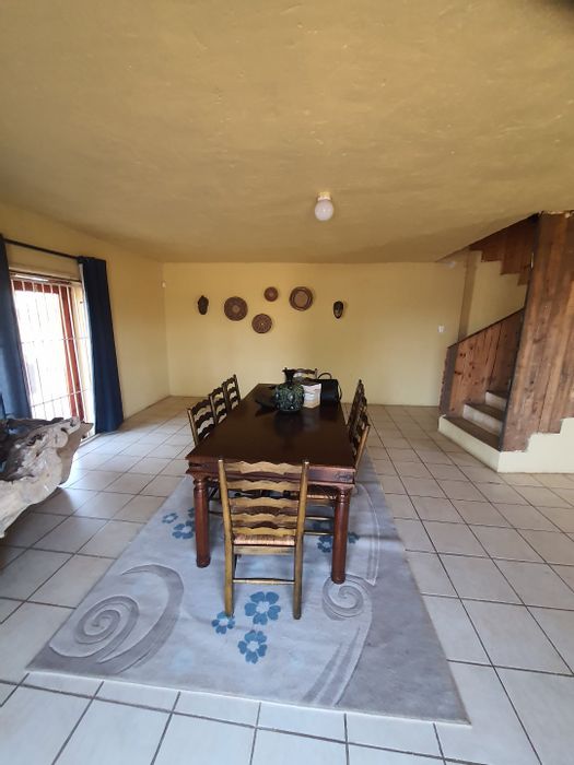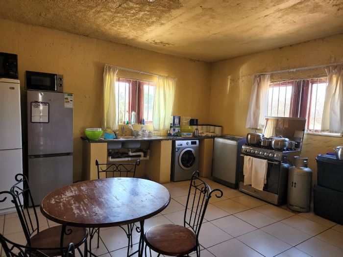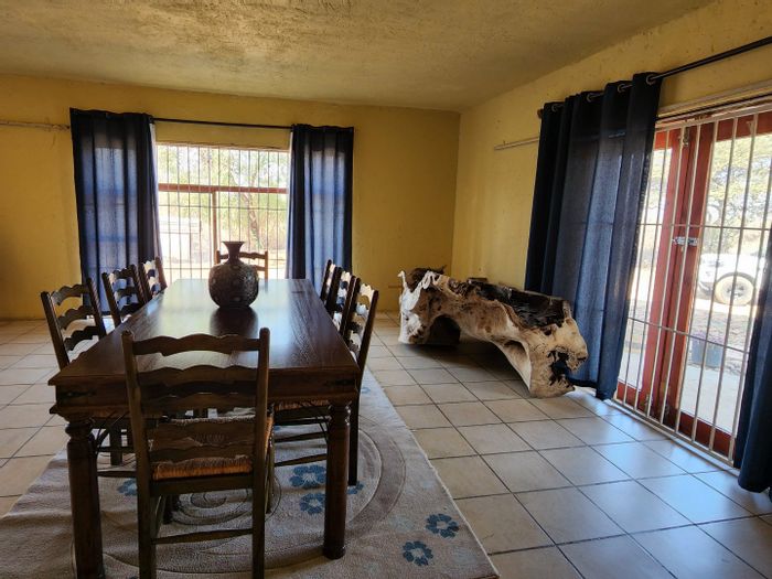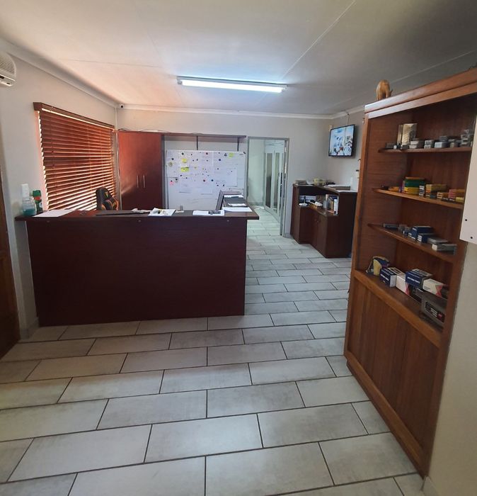 Live/work country lifestyle in Rietfontein, combining comfortable family living with commercial opportunity. Private garden and built-in braai; includes five bedrooms, three bathrooms and shop plus three warehouses.