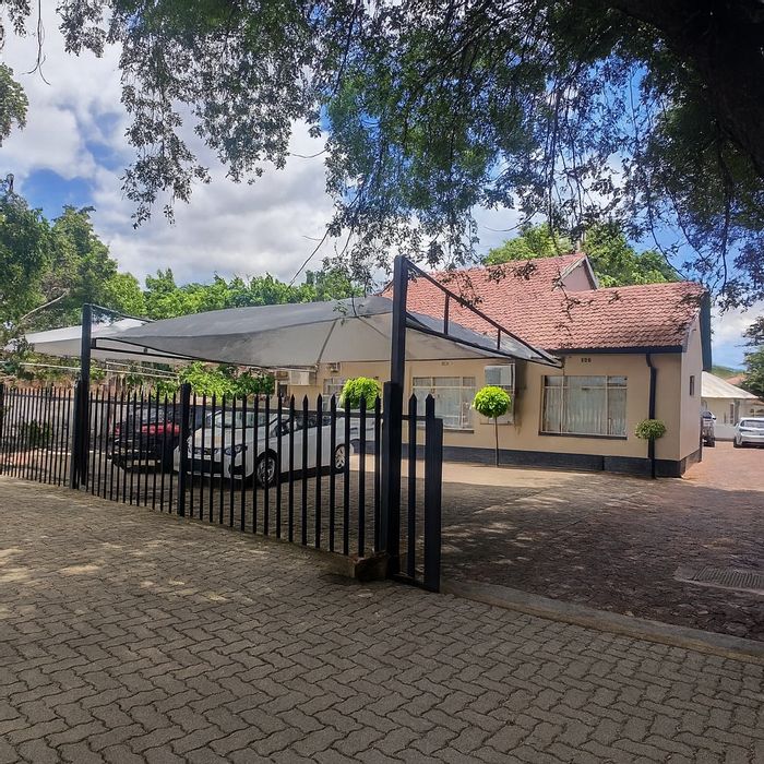 High-visibility commercial premises in Rustenburg, steps from Medicare Hospital and main road — ideal for professionals. Features six offices, two bathrooms, shared undercover shaded parking and access control.