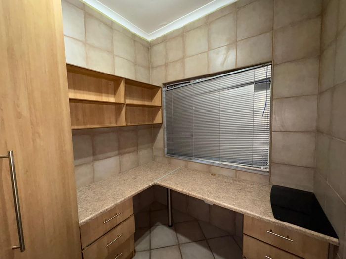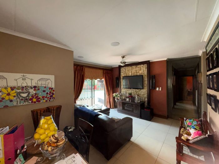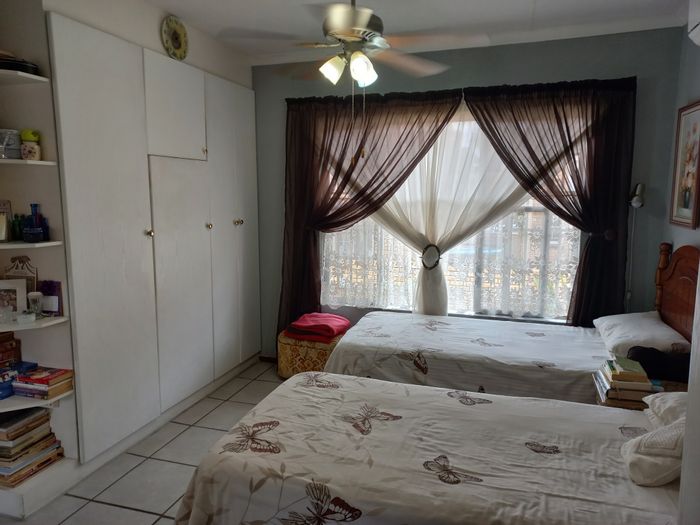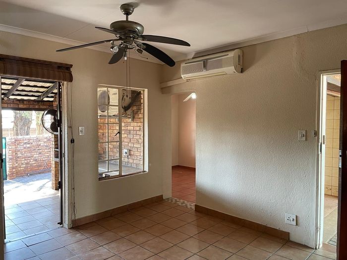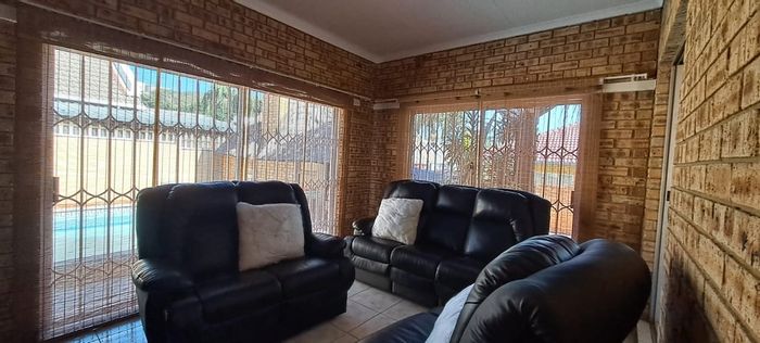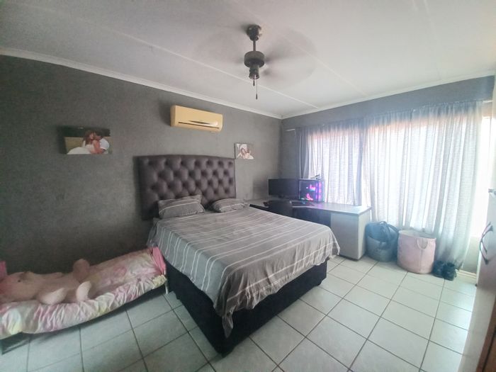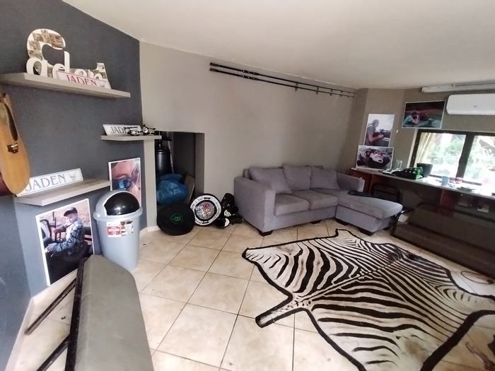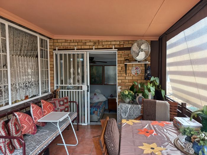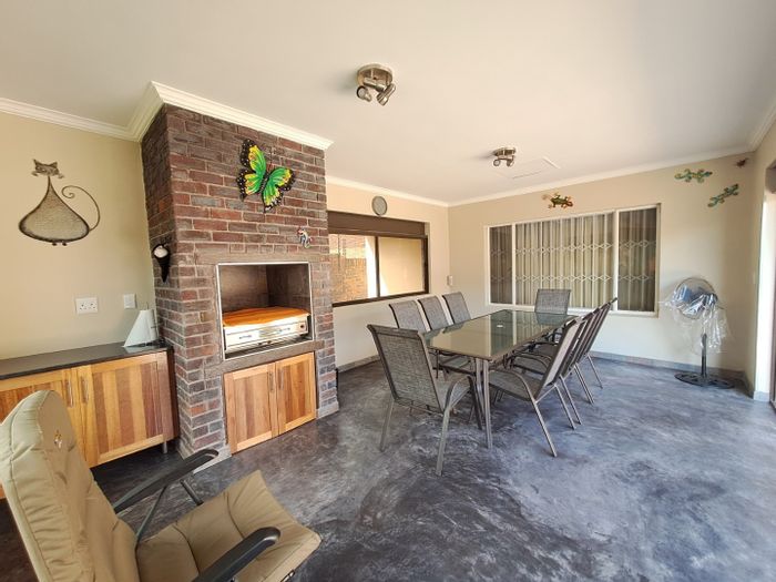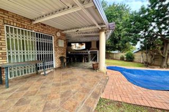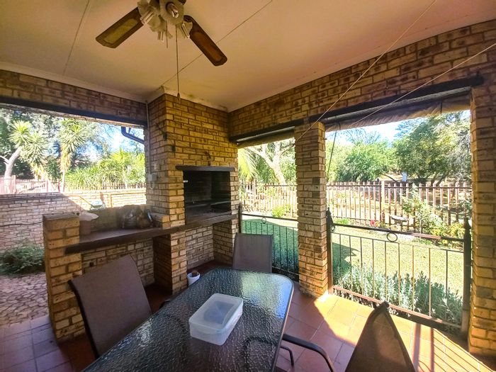 Family-friendly living in Safari Gardens, Rustenburg — secure estate lifestyle with communal pools and fishing pond. Entertain on a covered patio with built-in braai; 3 beds, 2 baths.