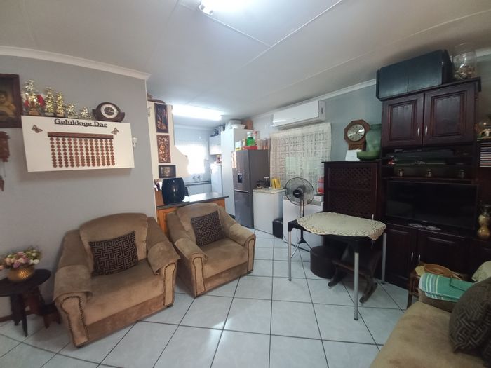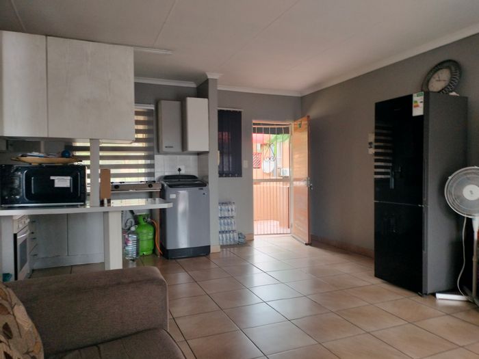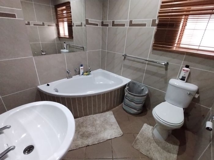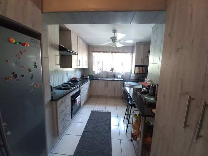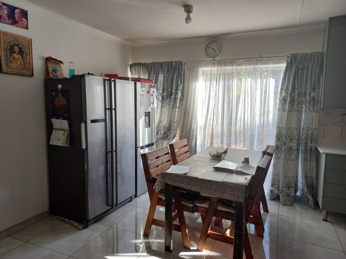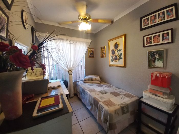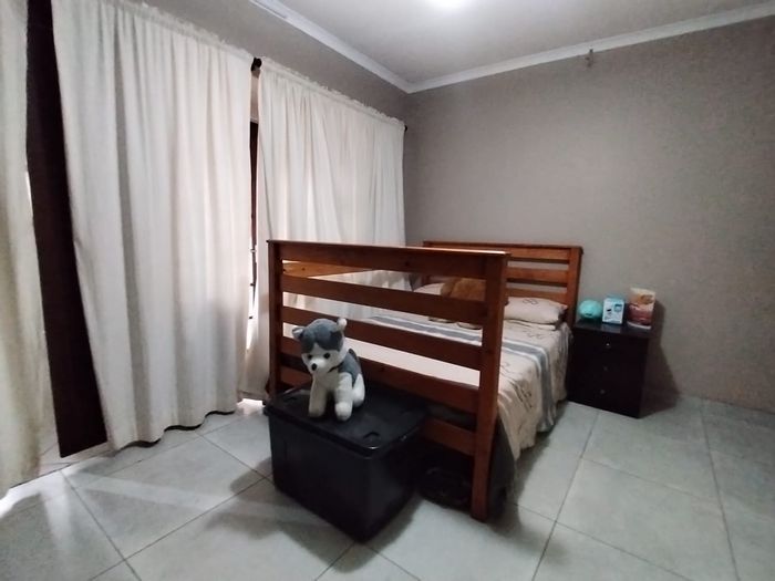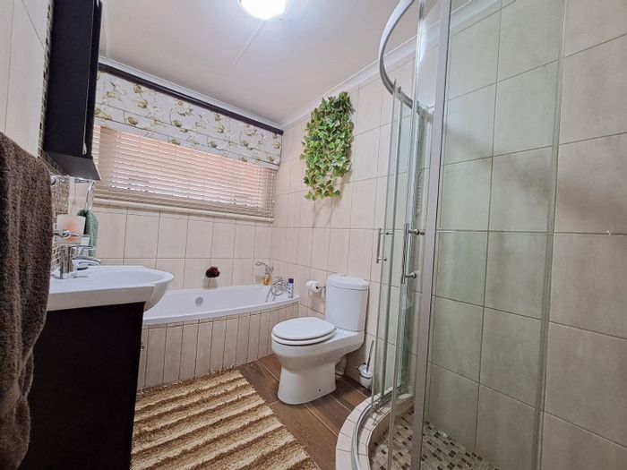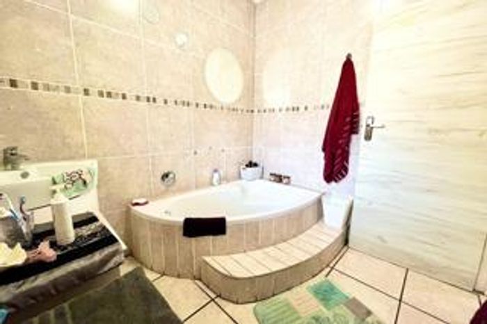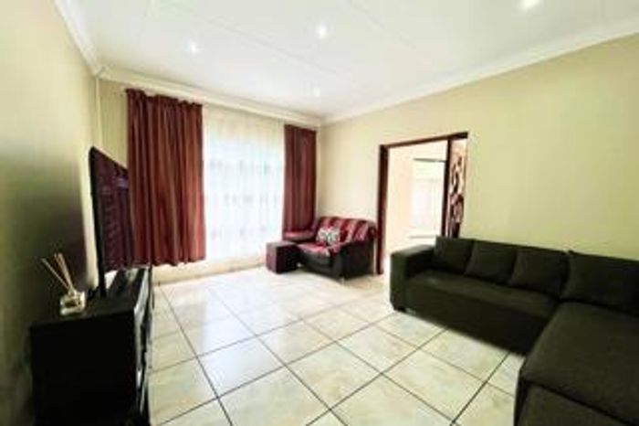 Family-friendly living in Safari Gardens, Rustenburg — secure estate lifestyle with communal pools and fishing pond. Entertain on a covered patio with built-in braai; 3 beds, 2 baths.