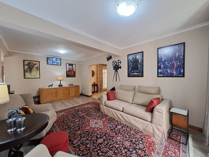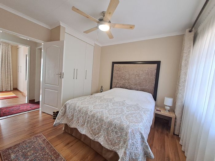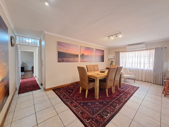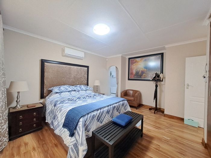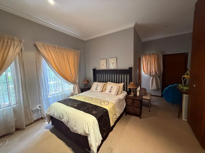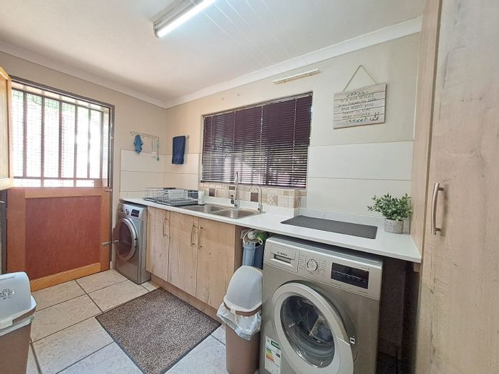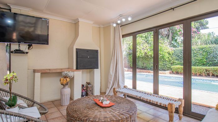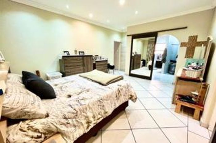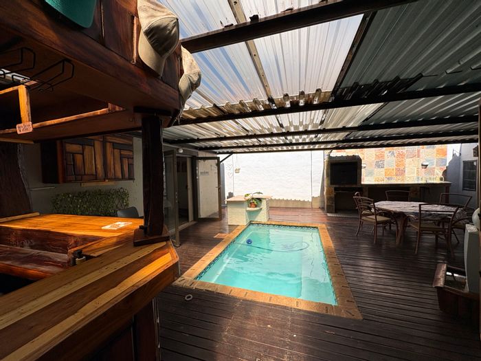 Effortless entertaining in a secure, low-maintenance duplex near quiet suburb conveniences, with pool and lapa featuring built-in braai and bi-fold doors; four beds, 2.5 baths, six covered parking.