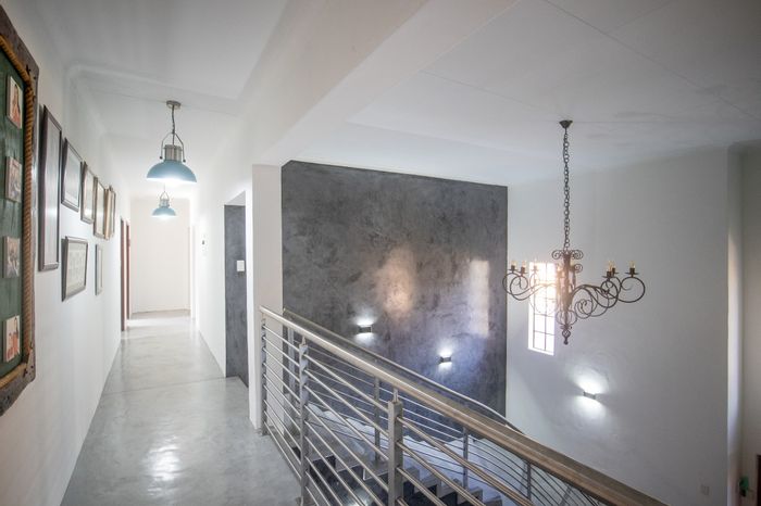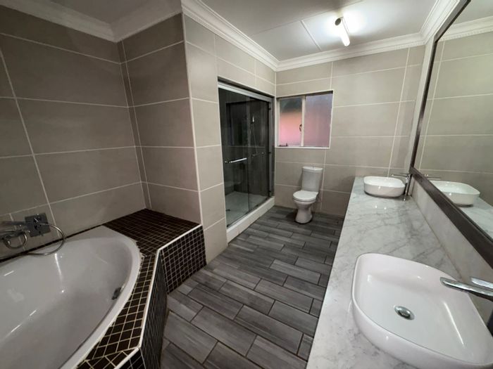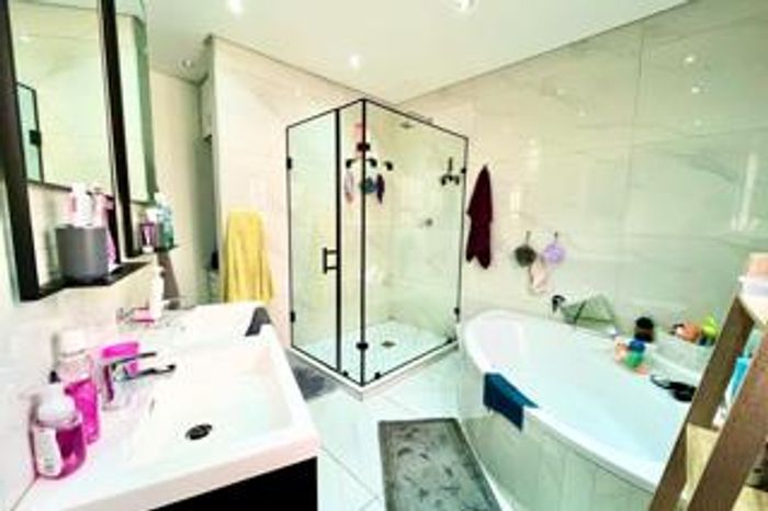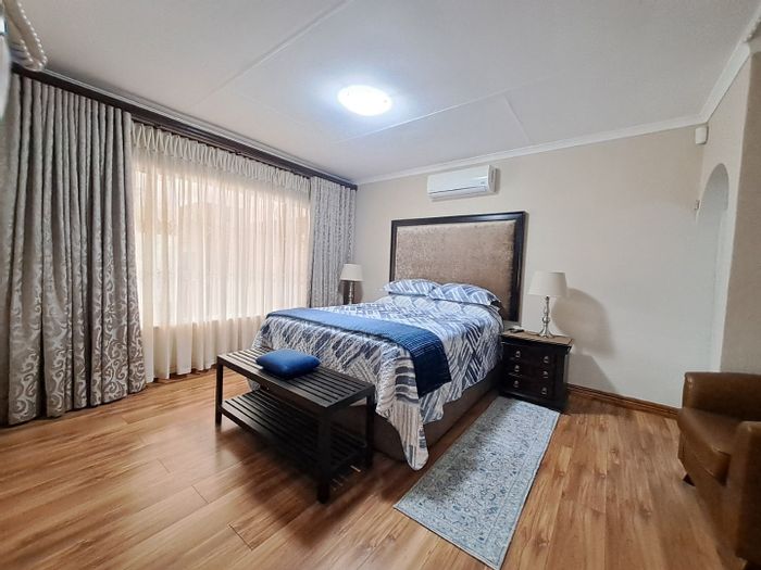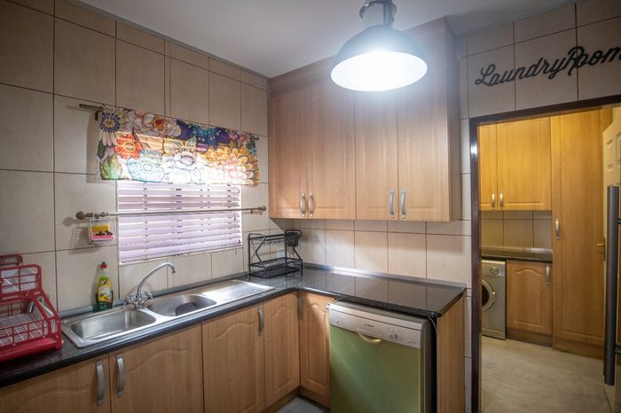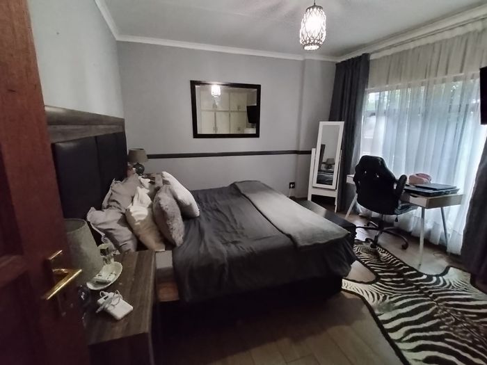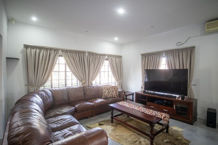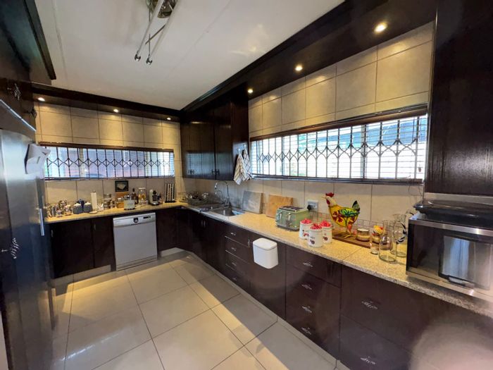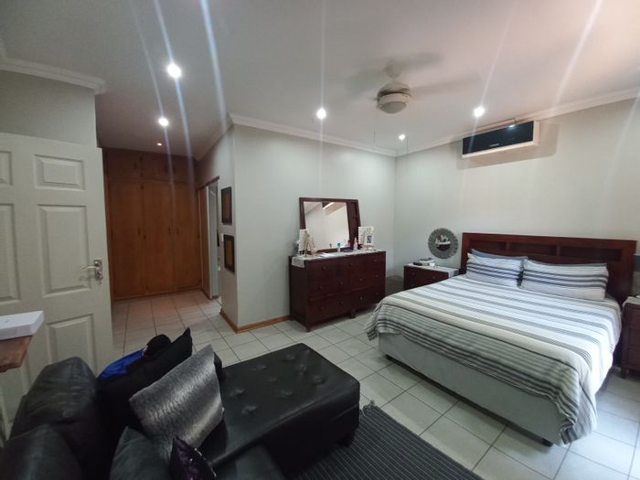 Effortless entertaining in a secure, low-maintenance duplex near quiet suburb conveniences, with pool and lapa featuring built-in braai and bi-fold doors; four beds, 2.5 baths, six covered parking.