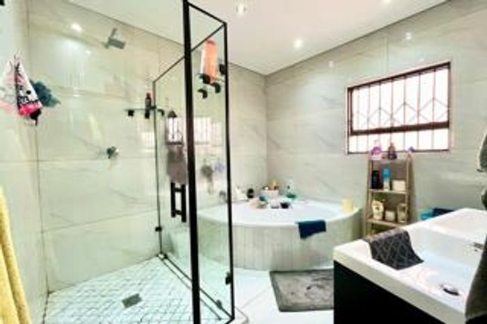 Entertainer's sanctuary in a prestigious upmarket suburb, featuring a jacuzzi, tranquil fish pond, full solar, landscaped garden with sprinklers — five bedrooms (three ensuites), double garage and multiple carports.