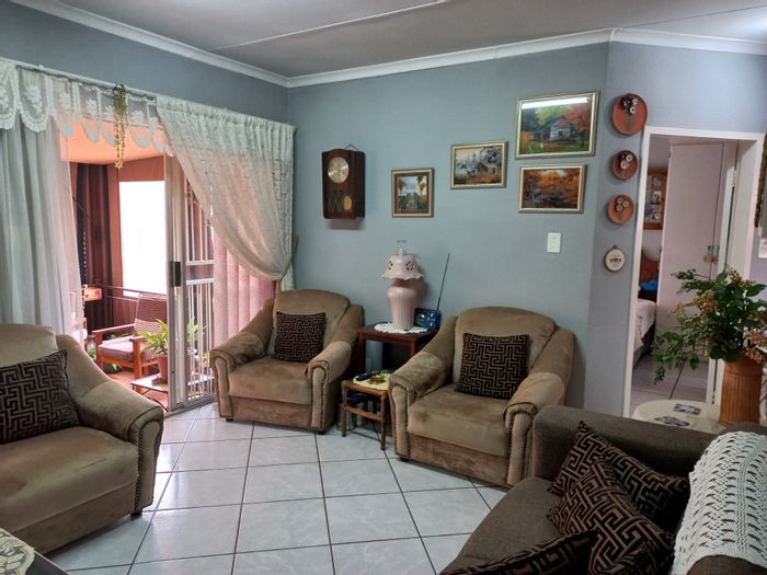 Sunny first-floor apartment in sought-after Safari Gardens, offering open-plan kitchen and lounge flowing to a private balcony — ideal for first-time buyers or investors. Two bedrooms, one bath, covered parking.
