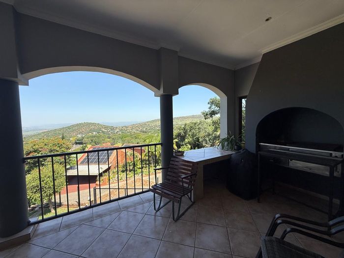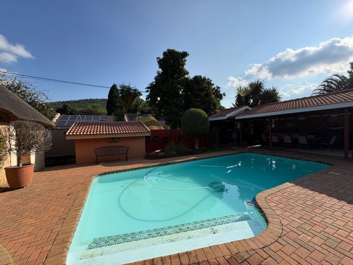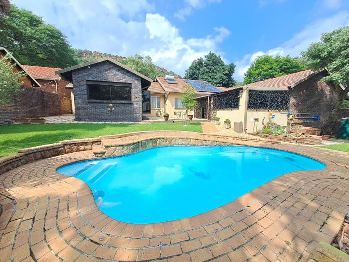 Family-focused living in Safari Gardens with dual residences on a large stand — pool and entertainment lapa, breathtaking views and borehole; main house plus 3-bed flatlet, garage parking.