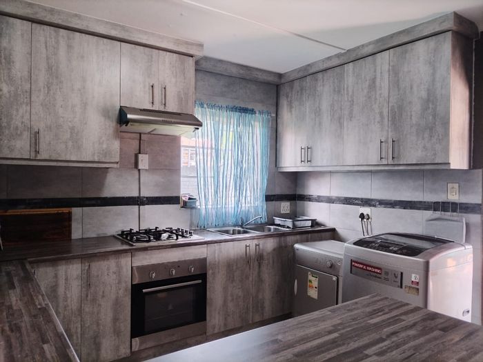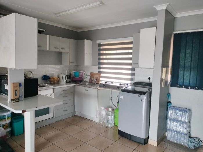 Serene first-floor apartment in a secure, sought-after suburb — open-plan kitchen, generous living/dining flow and balcony for sunset braais. Three bedrooms, two bathrooms, covered carport.