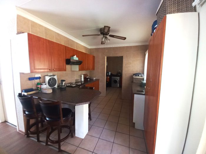 Entertainer's oasis in Safari Gardens with covered braai, bar and pool, seamless open-plan living and manageable garden. Main suite with ensuite and walk-in closet; five covered parking.