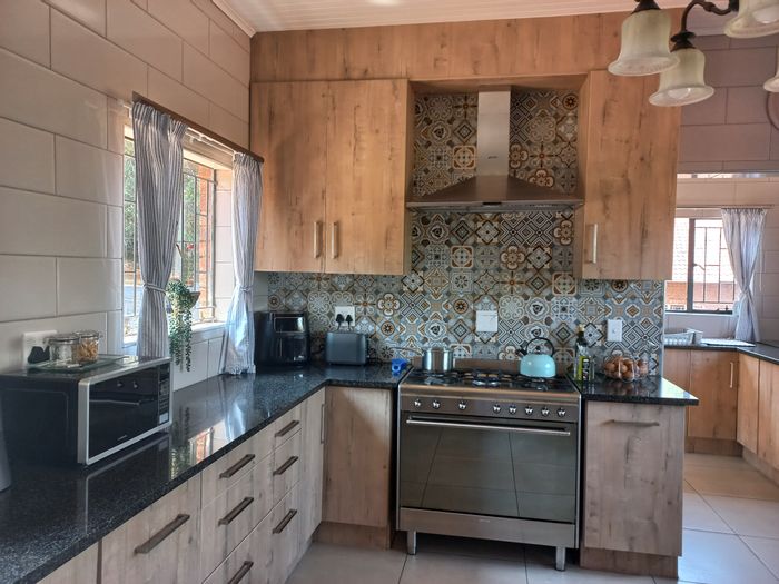 Serene family retreat in Safari Gardens, Rustenburg, with a lush garden and veggie patch, spacious stoep, modern kitchen with new eye-level oven, and self-contained one-bedroom flatlet for guests or rental.