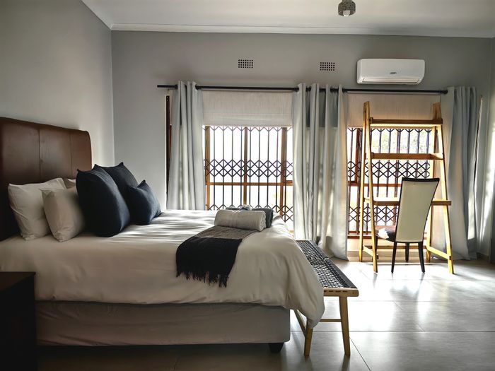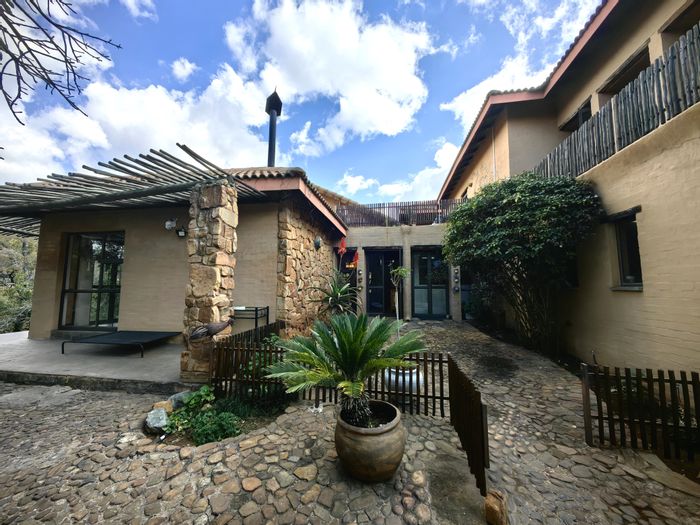 Secure eco-estate sanctuary on a 2-hectare stand, sweeping balcony views, solar, private borehole and electric fencing — five ensuite bedrooms with a flexible fifth, 2km to Waterfall Mall.