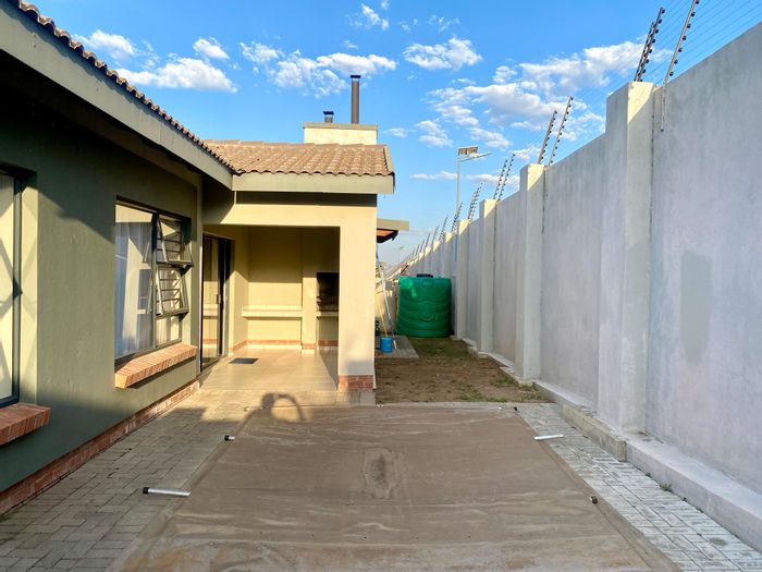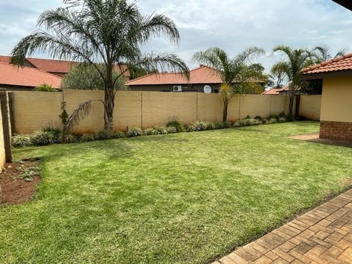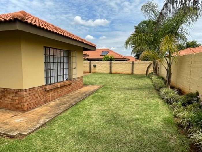 Enjoy secure estate living in Waterkloof AH, Rustenburg with a private garden and splash pool, open-plan kitchen for entertaining, three bedrooms, two baths and double parking.