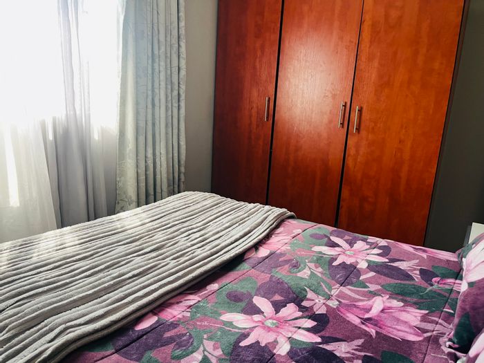 Shop-and-school convenience in a secure Rustenburg complex near Waterfall Mall and Platinum Square — relax on your private balcony; main bedroom ensuite. Two beds, two baths, closed garage.