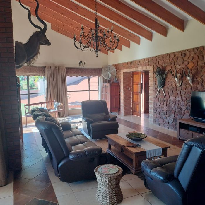 Private 121-hectare farm blending working and leisure living: move-in ready homestead, stream-front boma and chalet, irrigated lucerne paddocks, strong boreholes, solar backup and game fencing.