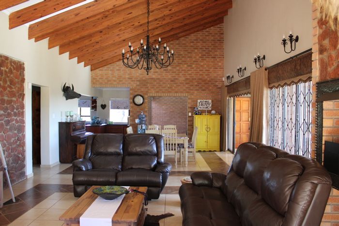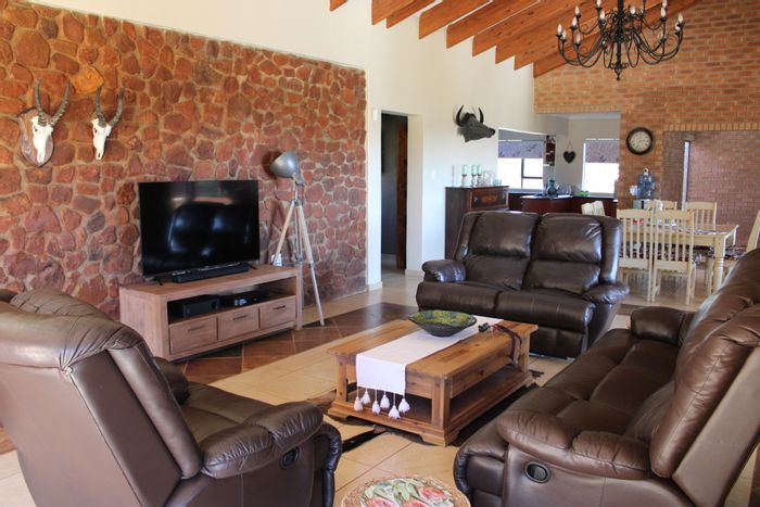 Versatile mixed-farming and game estate between Swartruggens and Zeerust, fully game-fenced with panoramic plains, three bungalows and communal lapa — 1,060 ha ideal for cattle and wildlife.