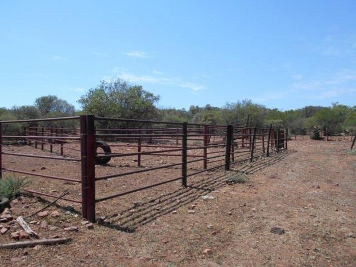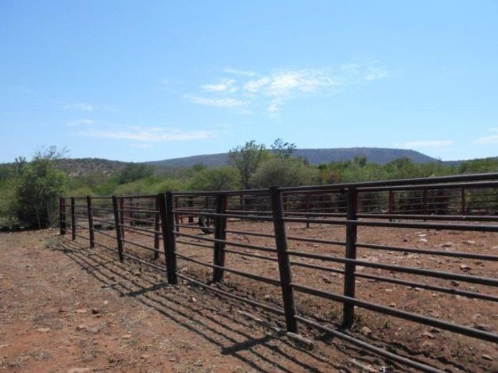 Experience authentic bushveld living 10km from Swartruggens toward Groot Marico, ideal for cattle and game farming, with a perennial fountain, three boreholes and handling facilities across 467.5ha.