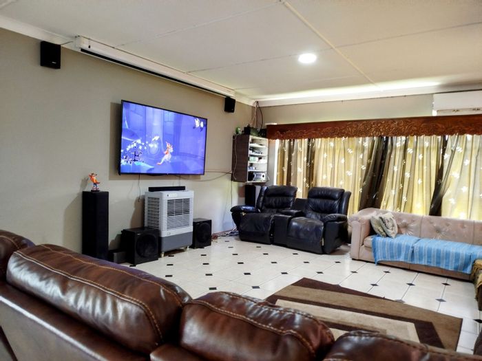 Entertainer's oasis in Ventersdorp, ideal for family living and hosting, featuring a lapa with loft and built-in braai overlooking the pool and lush garden. Four beds, two baths, three carports.