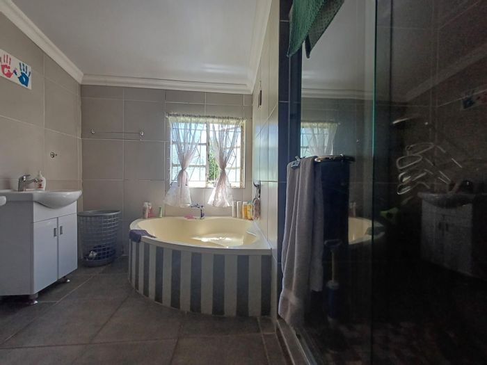 Four bedrooms, two bathrooms, double garage on 1427 m² in Wolmaransstad. Includes granny flat and energy-efficient features.
