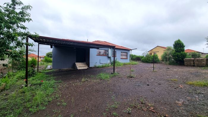 Relaxed family living in Zeerust with room to grow — generous stand, awning ready for an entertainment terrace or double carport, plus three bedrooms and one bathroom.