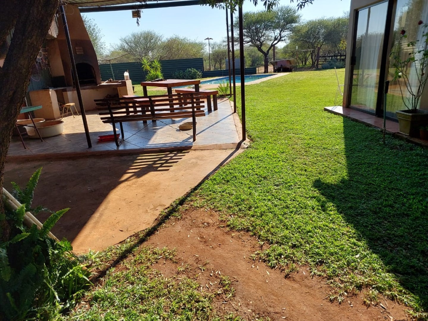 Exquisite plot with the main house, double storey, 4 x bedroom and 3 x bathrooms a huge lounge and an extra flat built on the house. Lapa, swimming pool, and an extra pool room. Huge storage facilities. 3 x Garages, Solar system and 2 x boreholes.