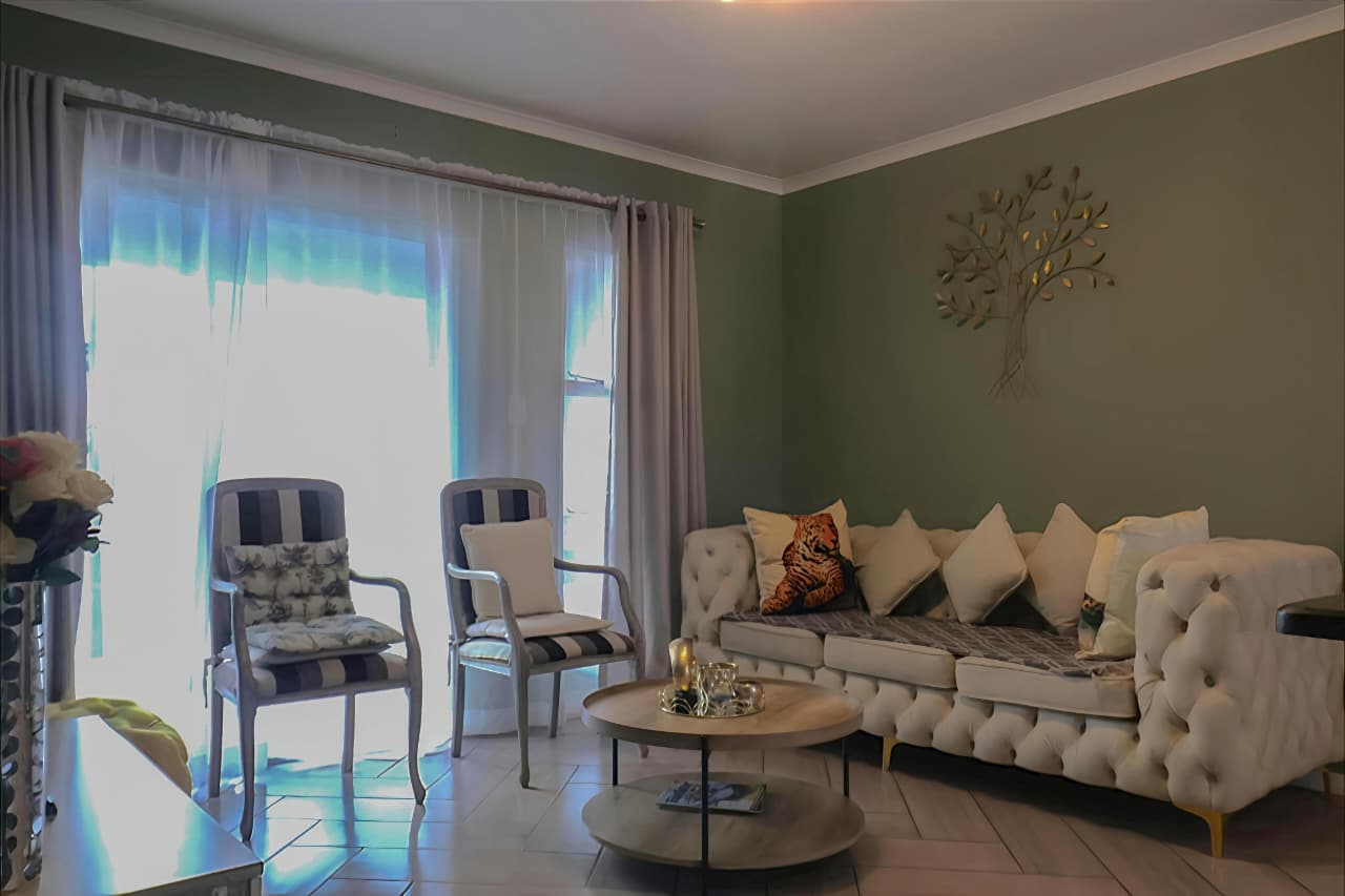 The open-plan living space is warm and inviting, with a contemporary kitchen fitted with granite countertops, modern cabinetry flowing seamlessly into the comfortable lounge area.