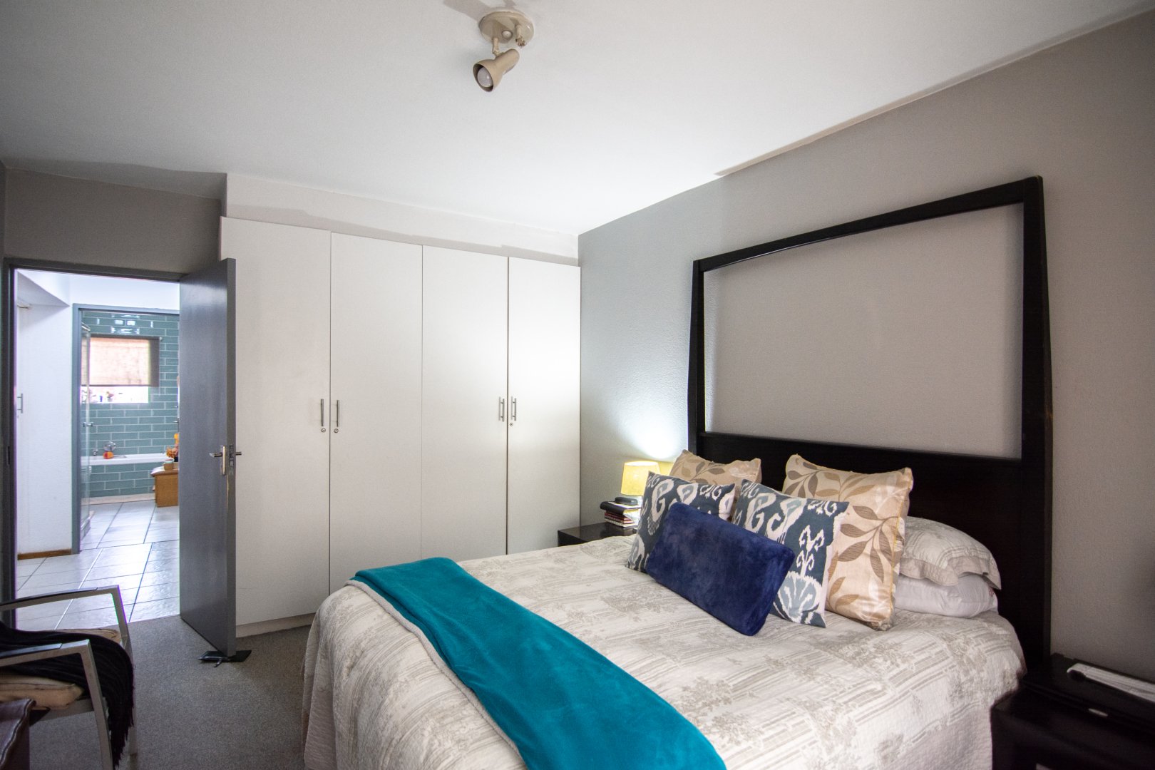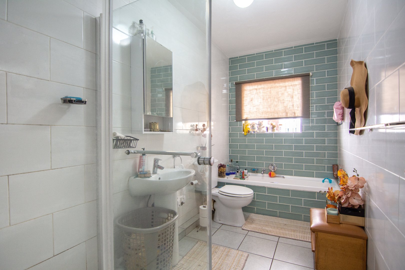 Both bedrooms are well-sized with built-in cupboards, while the bathroom is neatly finished with a bath and shower combination. The kitchen is functional and well laid out, offering ample cupboard space and easy access to the living area.