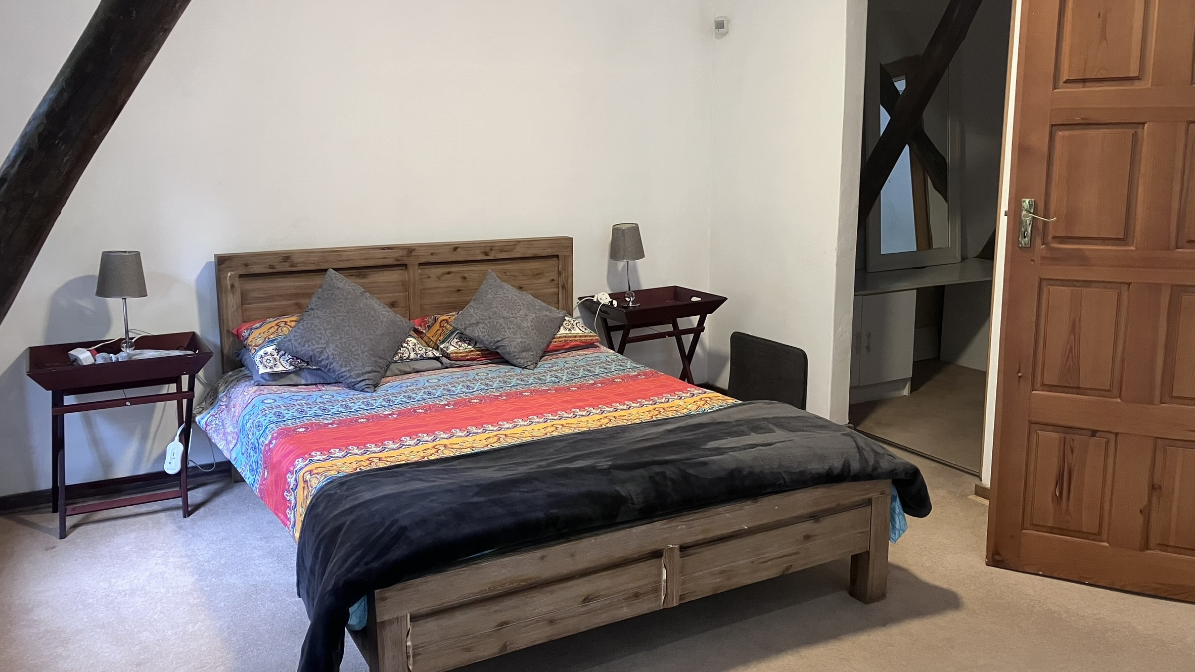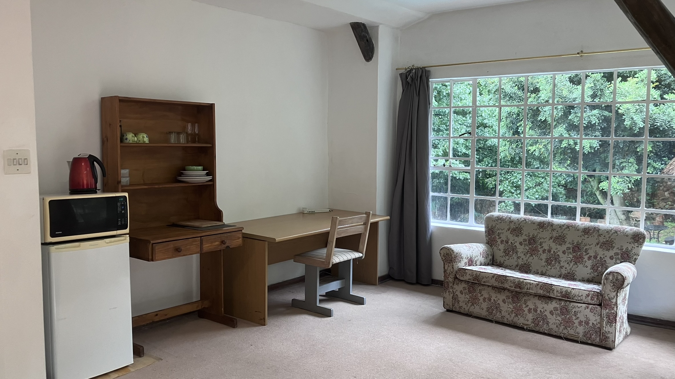 This listing is for a 1-bedroom open-plan unit with its own entrance, a small kitchenette, a large bathroom featuring a bath and shower, a walk-in cupboard, and a study desk.
