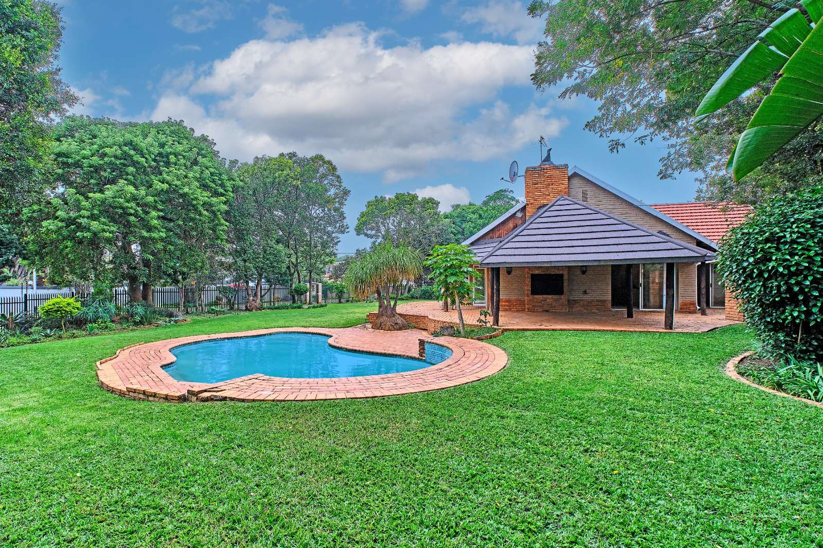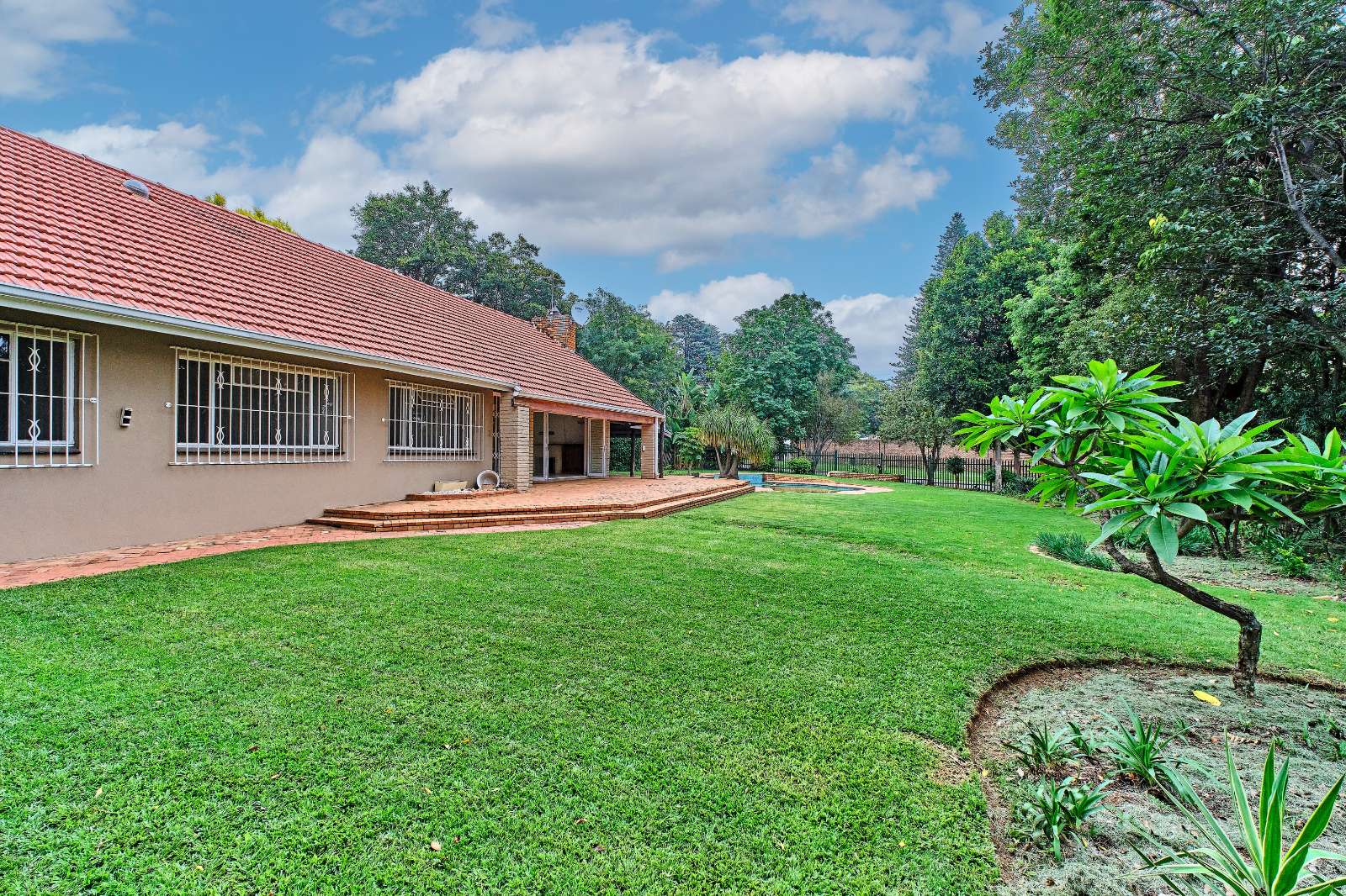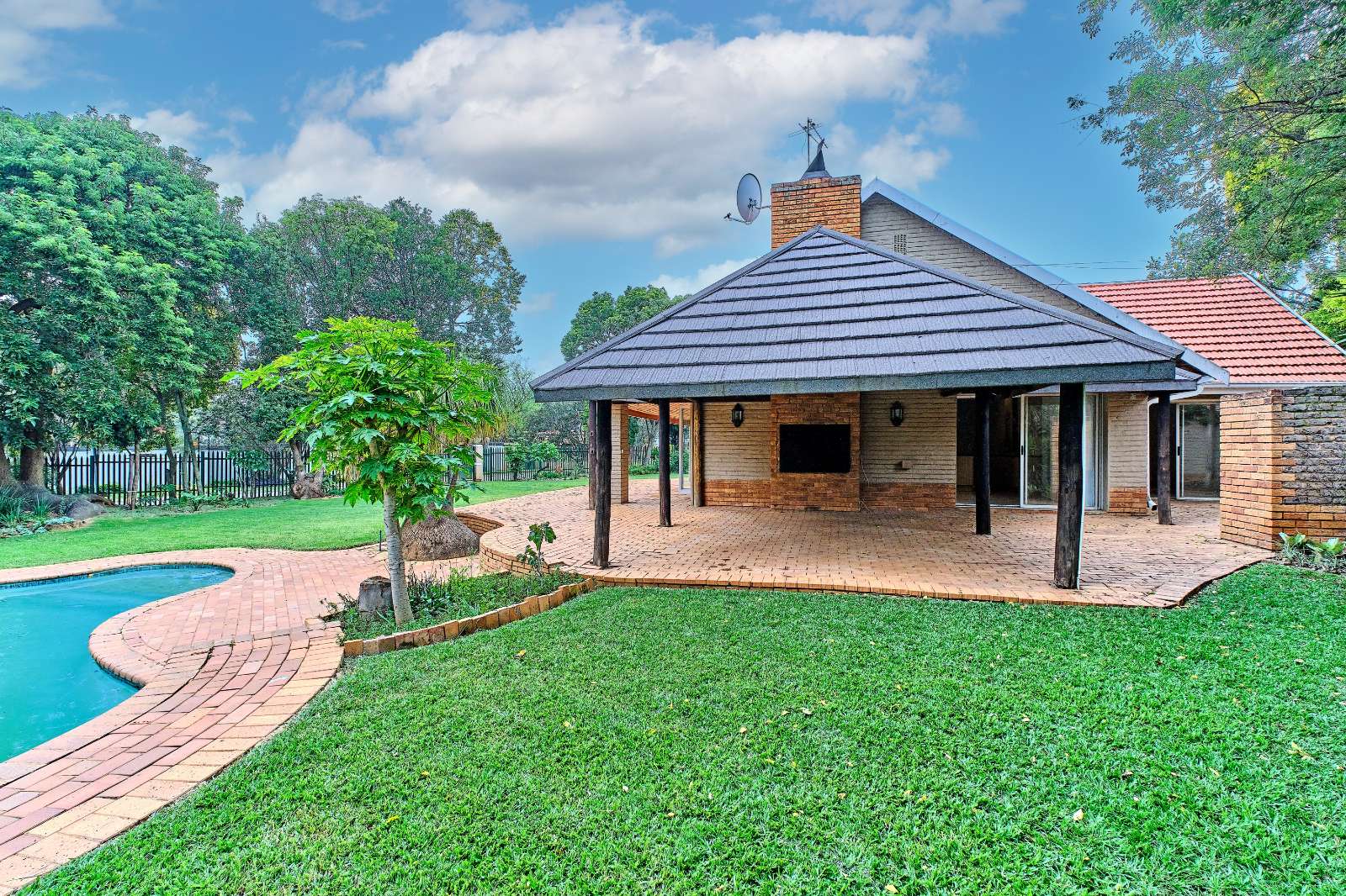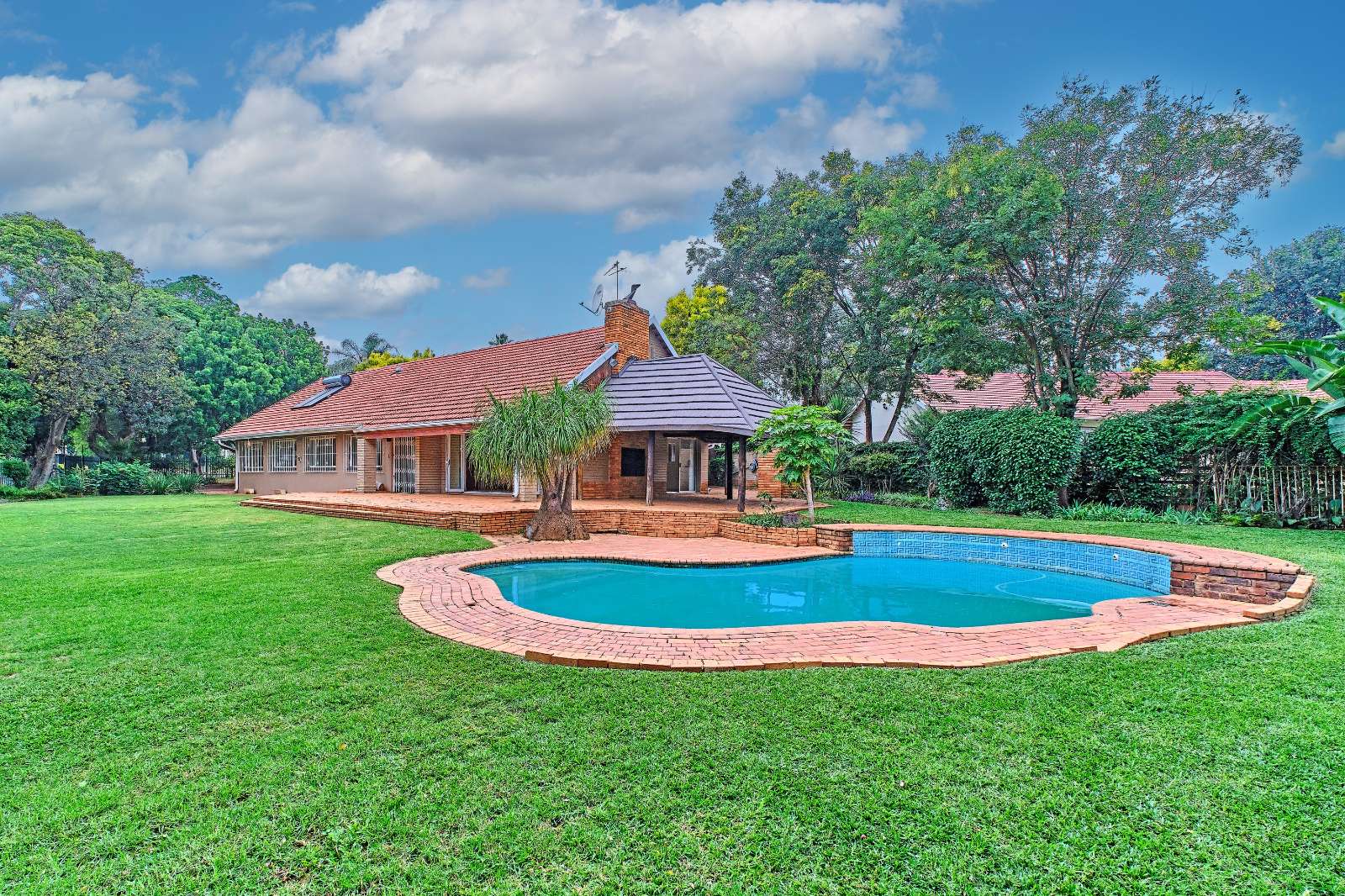 The lush green lawn invites you to enjoy your garden and Lapa at the poolside.
