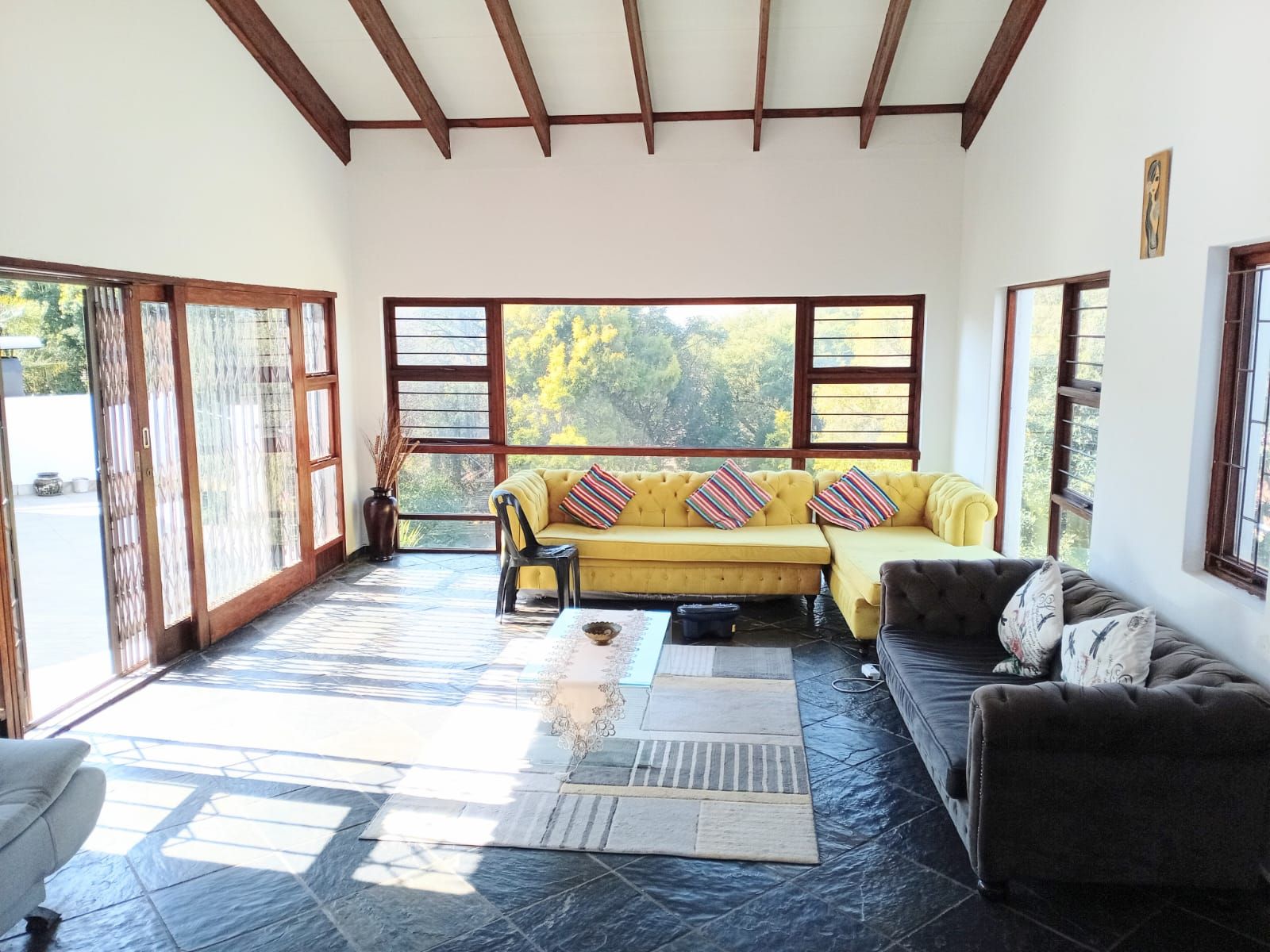 Top Security: Electric fence, alarm system, SCP Armed Response, back beam, Spanish burglar bars, and Trellis doors.