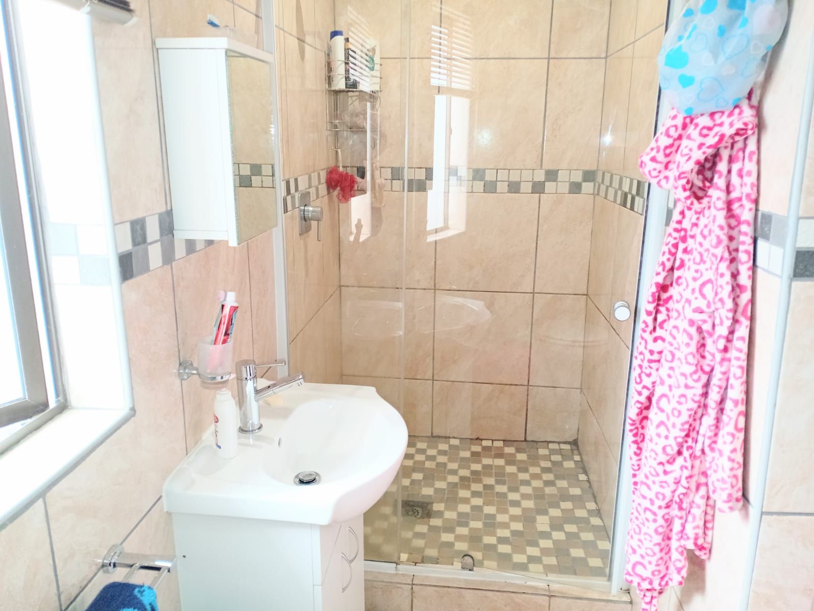 Bedroom 4: Ensuite with shower, toilet, basin, and built-in cupboards and fan– ideal for a teen or guest room
