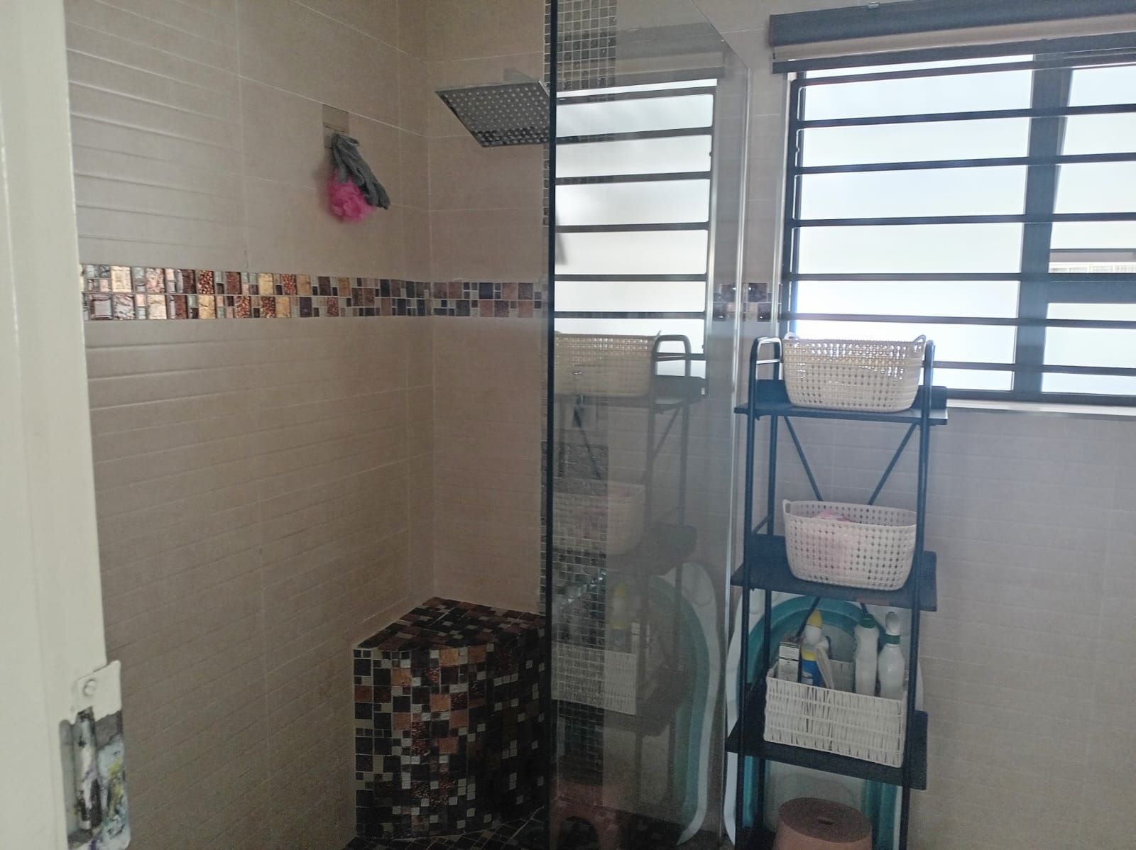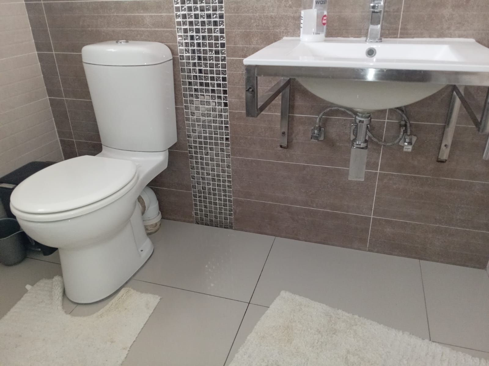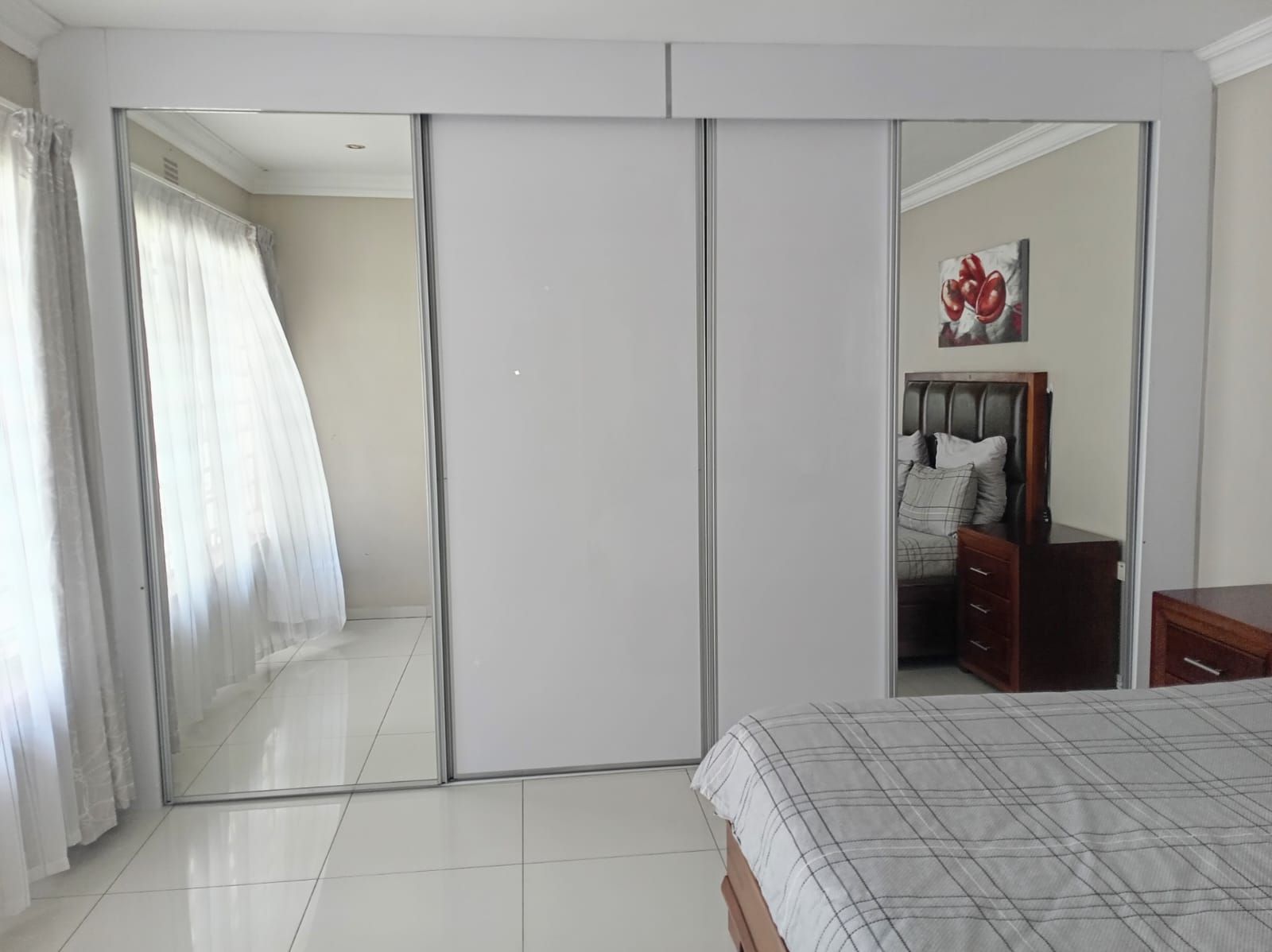 The entire house is fully tiled with sleek high-gloss tiles, creating a modern, low-maintenance finish throughout. All three bedrooms are well sized, with the main bedroom featuring elegant mirror-door built-in cupboards. A neatly finished bathroom, tiled from ceiling to floor, includes a shower, basin, and toilet. A security gate in the passage adds an extra layer of protection to all bedrooms.