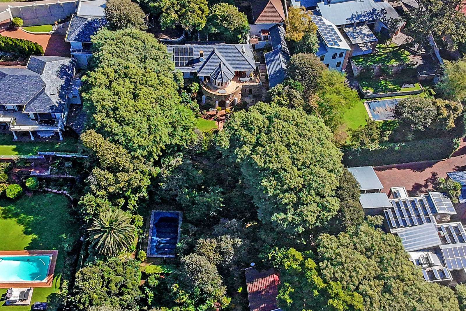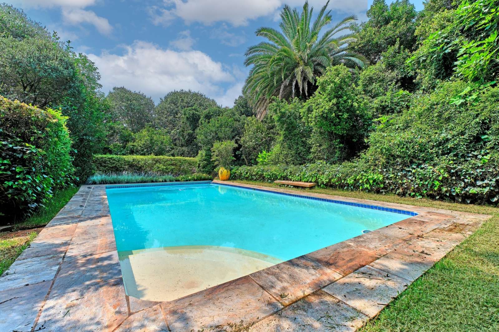 Outside, a private wonderland unfolds. Lovingly curated over decades, the garden is a sanctuary of discovery and delight. Stroll cobbled paths through shimmering mosaics, tranquil fountains, and a charming chess garden. As evening falls, curated lighting transforms the space into an enchanting retreat. The sparkling pool, with its protective cover, beckons for sun-soaked weekends and family laughter.