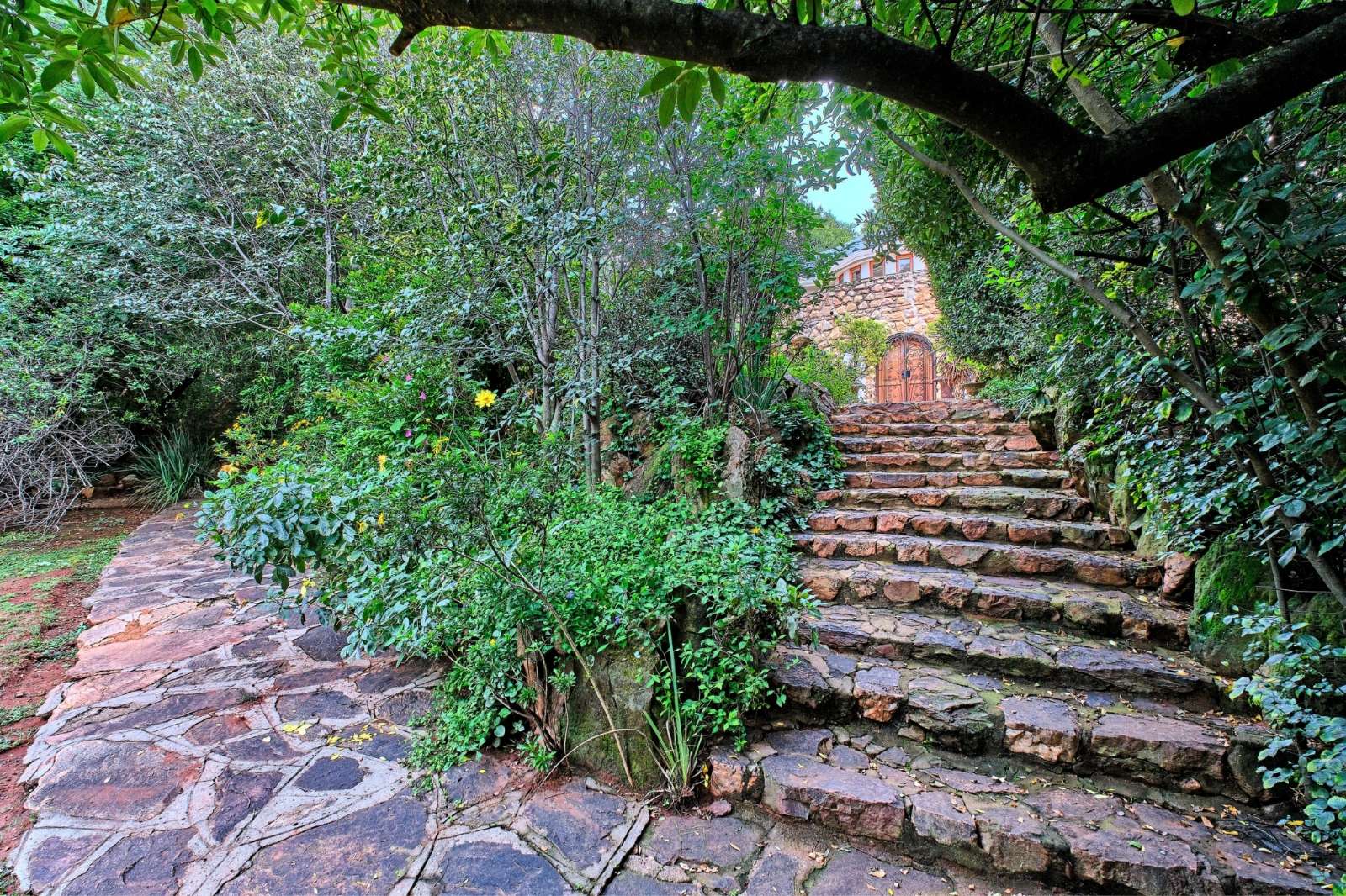 -Pathways winding through hidden garden spaces
