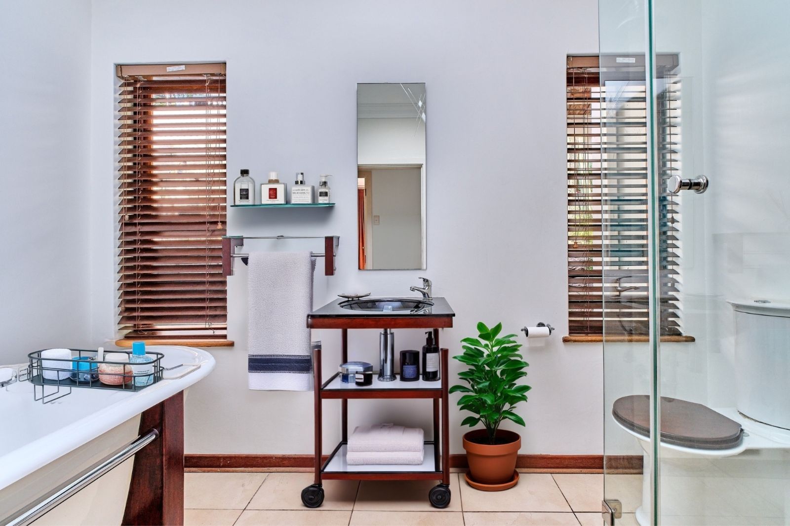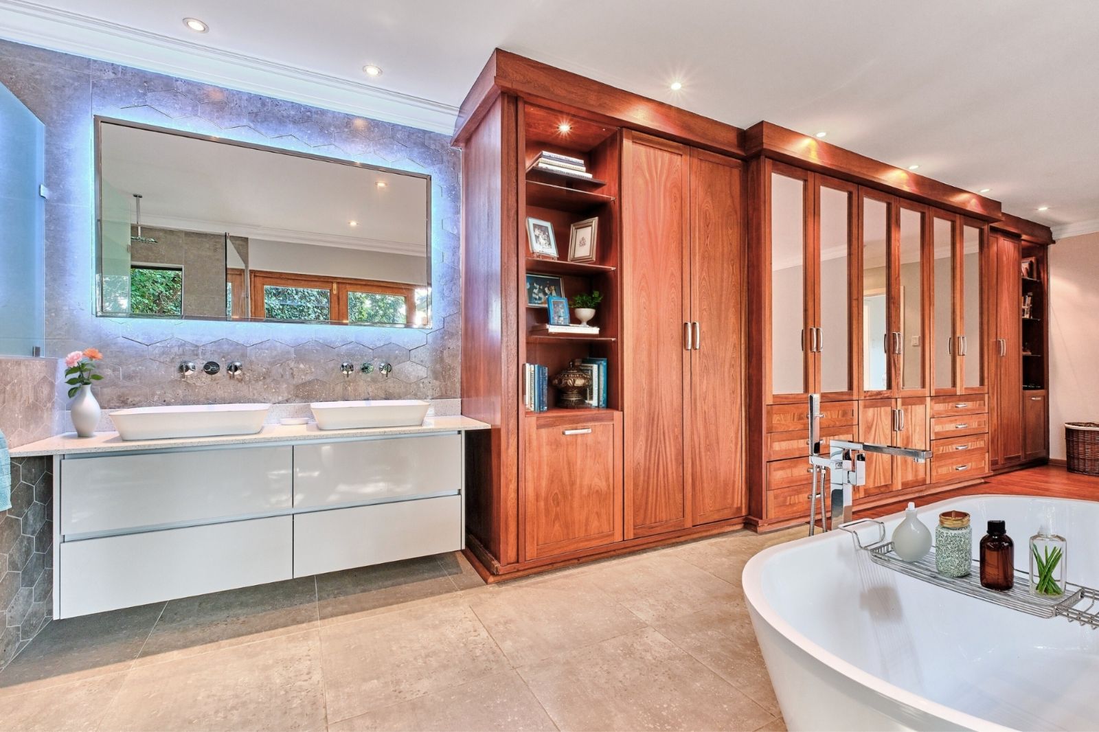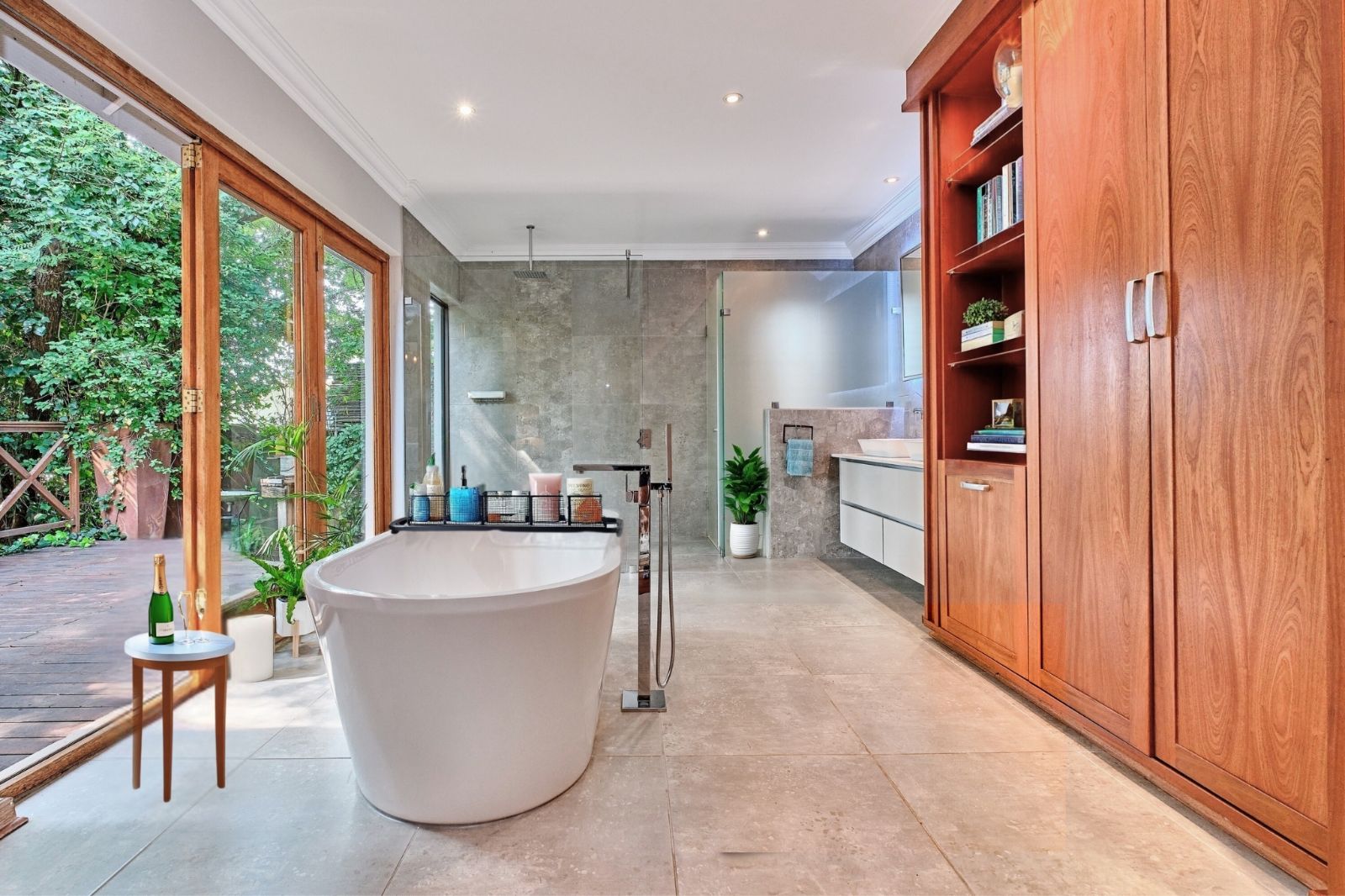 -En-suite with Japanese garden, double shower, double vanity, standalone tub