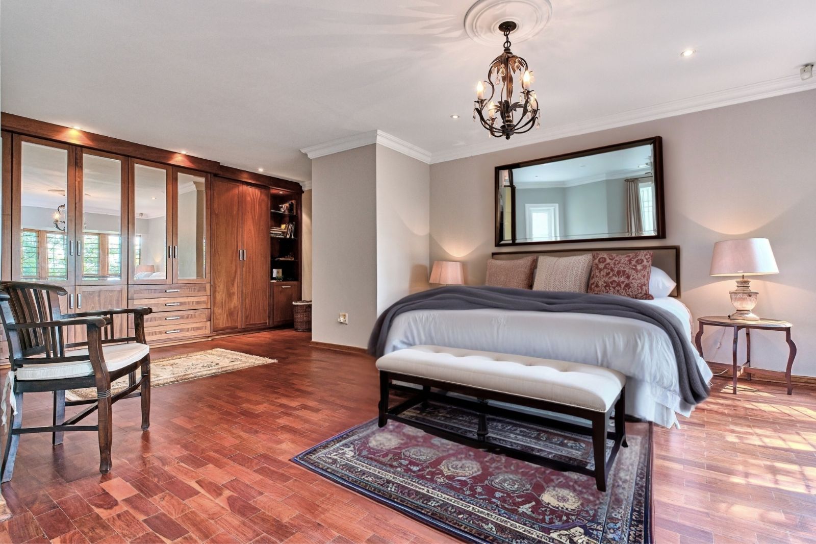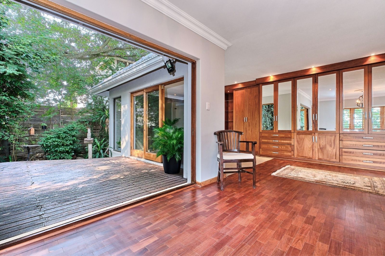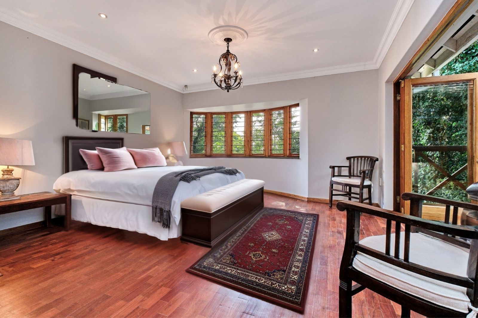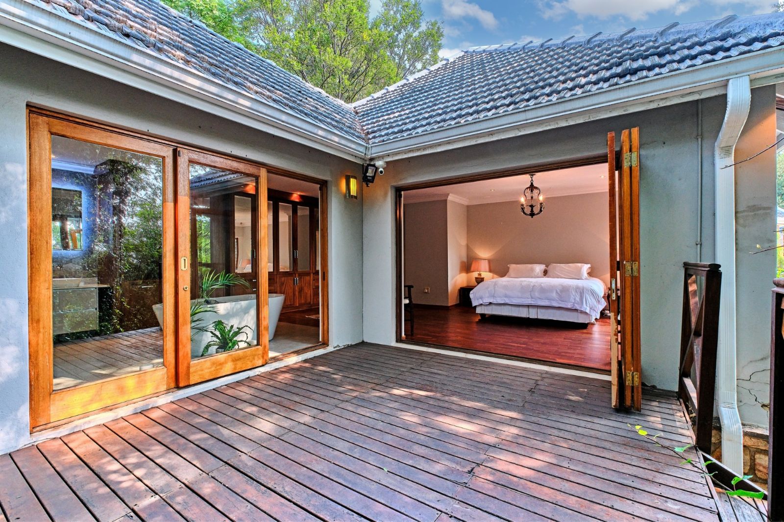 Luxurious main suite with private wooden deck and stunning views