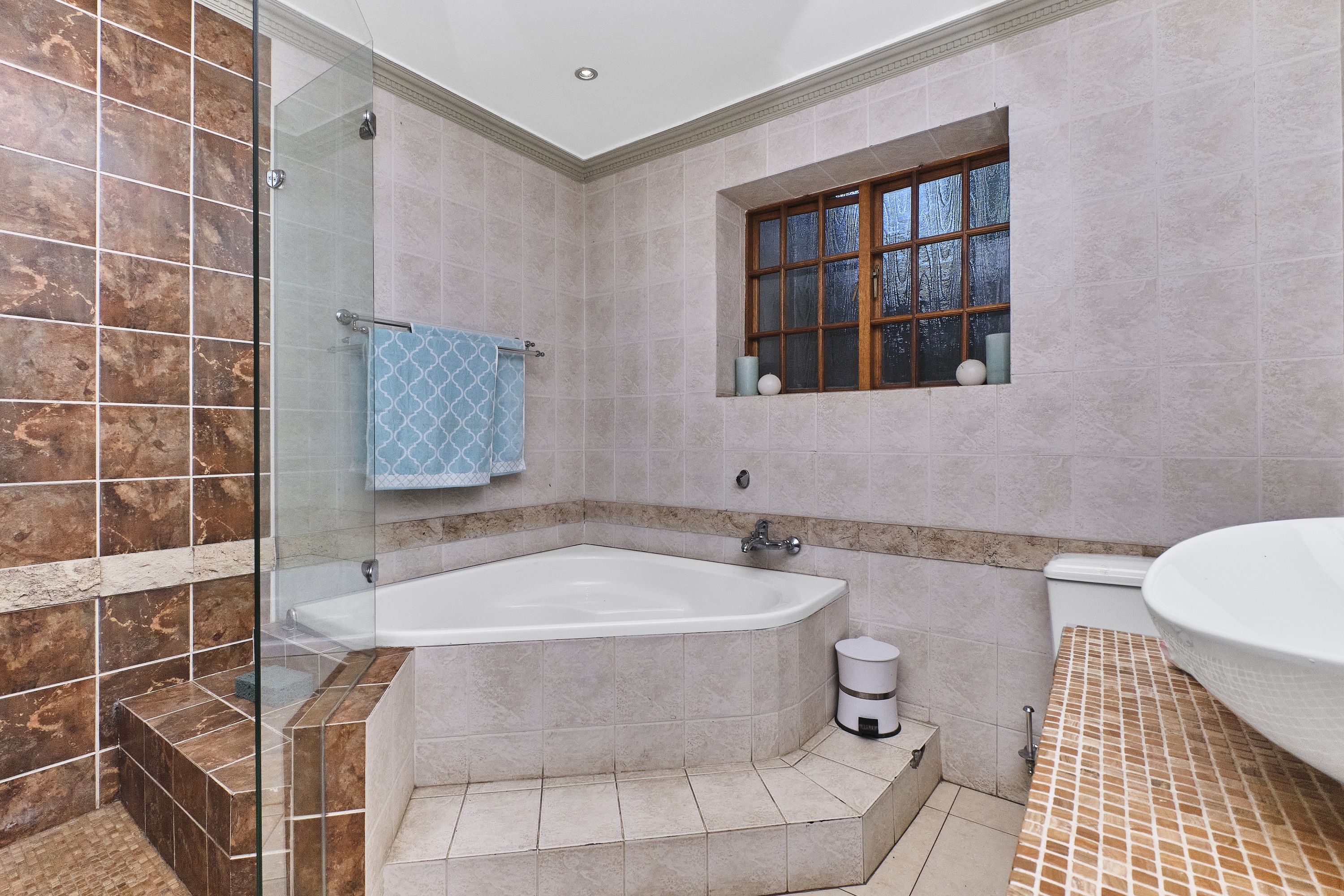 Gourmet Kitchen: Equipped with granite countertops, a gas hob, built-in chip fryer, steak hot plate, coffee machine, microwave, pantry, and separate scullery—ideal for family meals or hosting dinner parties.