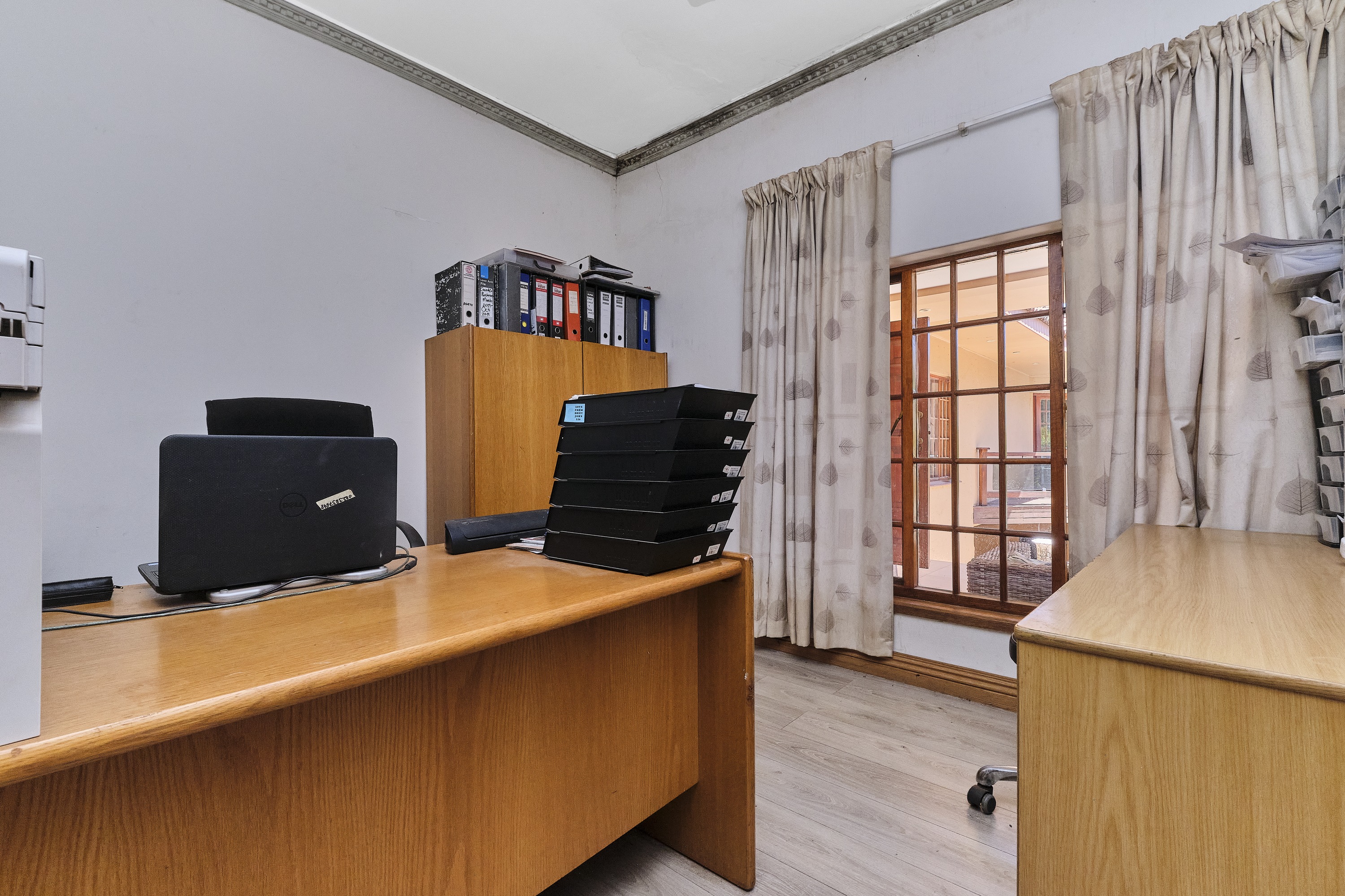 Study: A quiet space with a ceiling fan, perfect for working from home or managing household affairs.