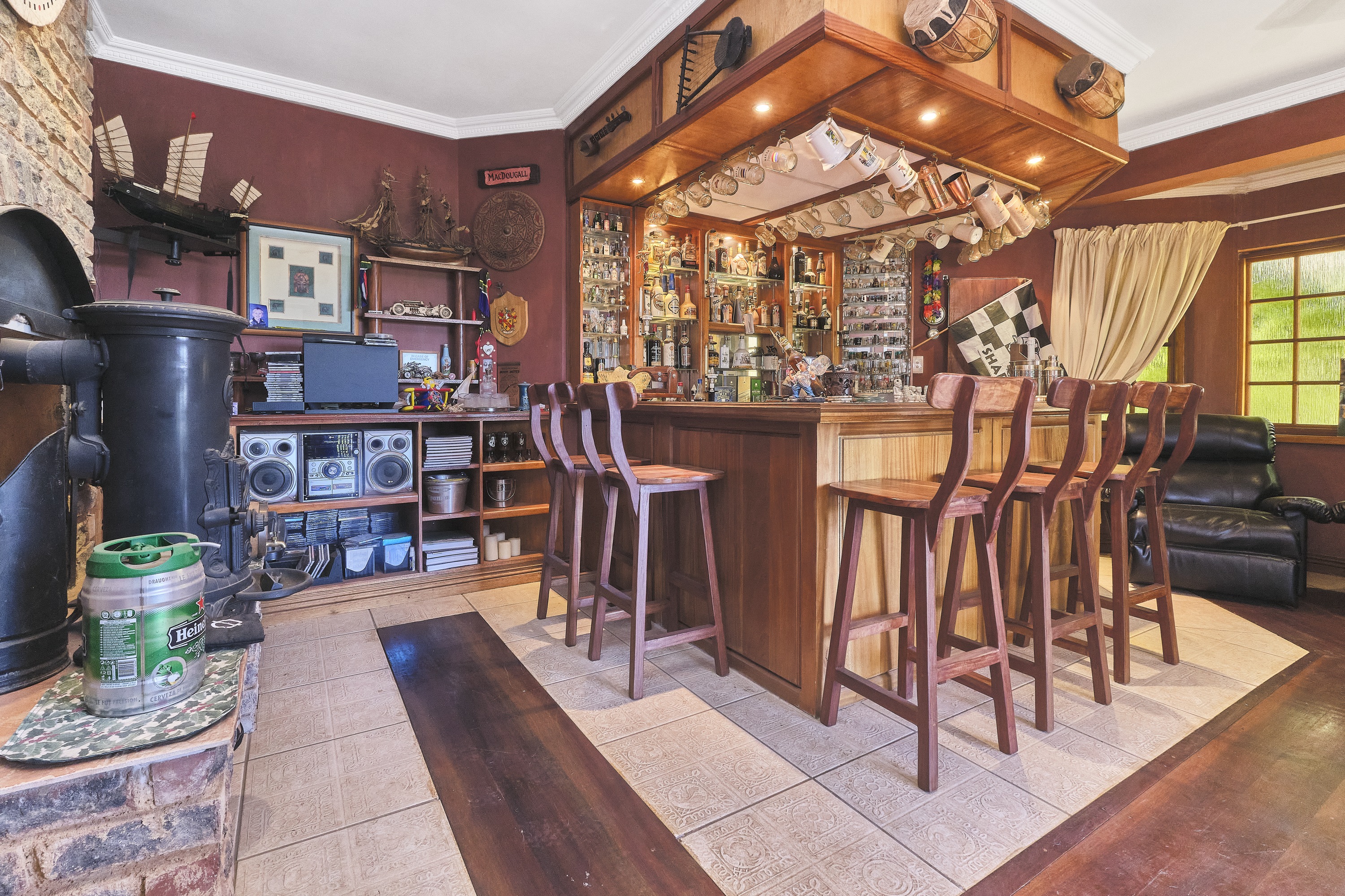 Charming Pub: A built-in bar with two undercounter fridges (included), a fireplace, and seamless access to the balcony, creating a perfect setting for gatherings or quiet evenings.