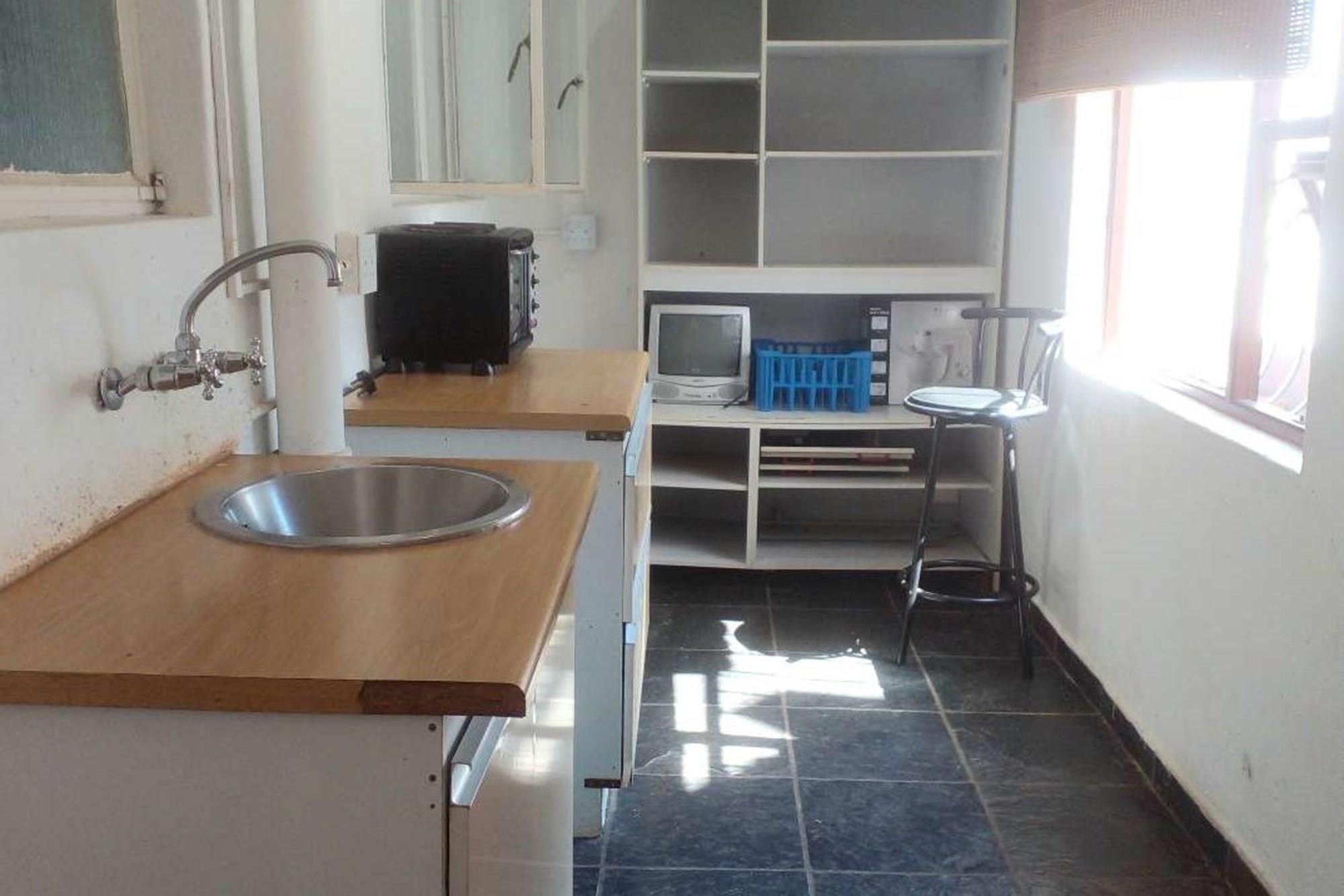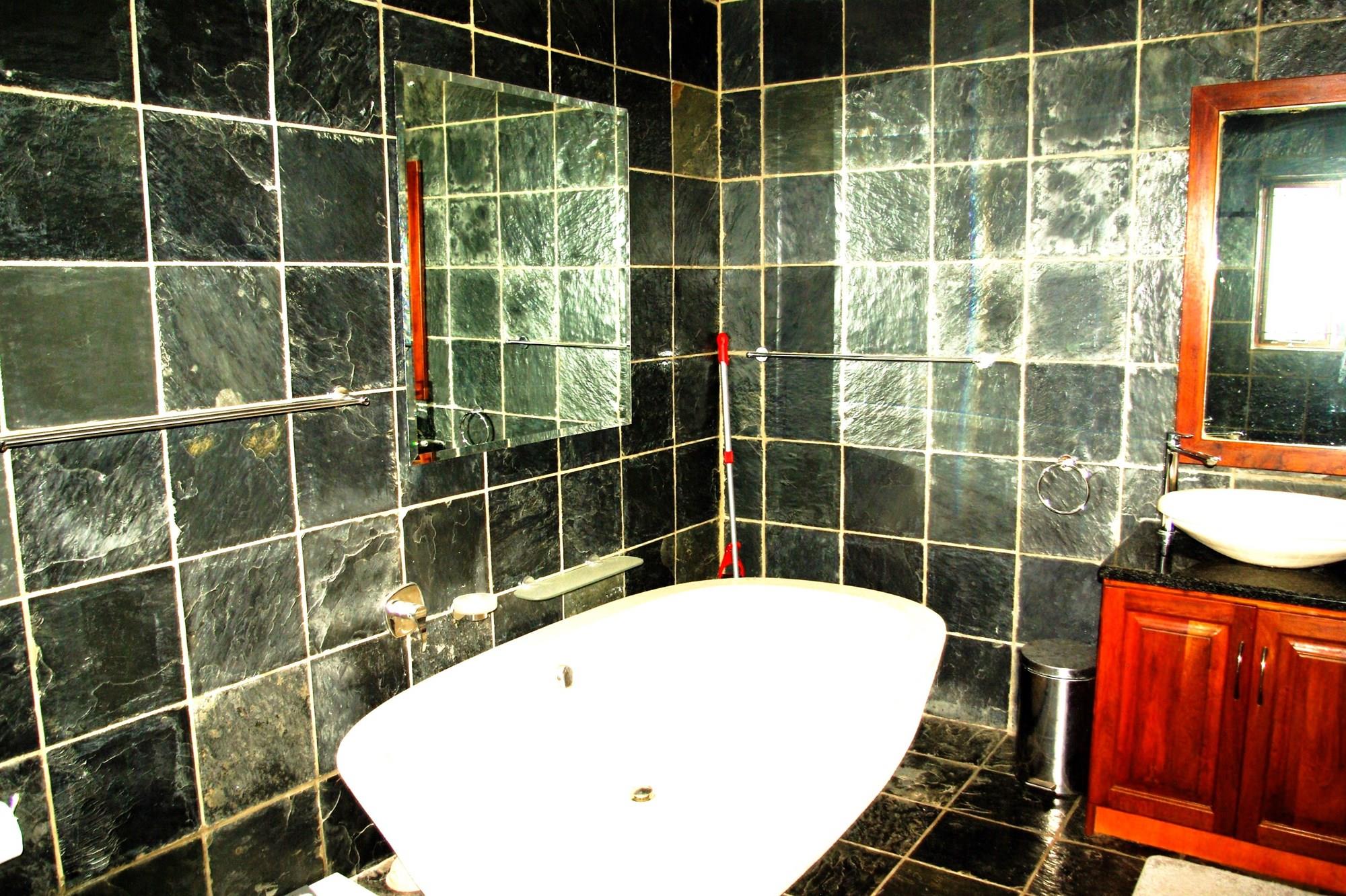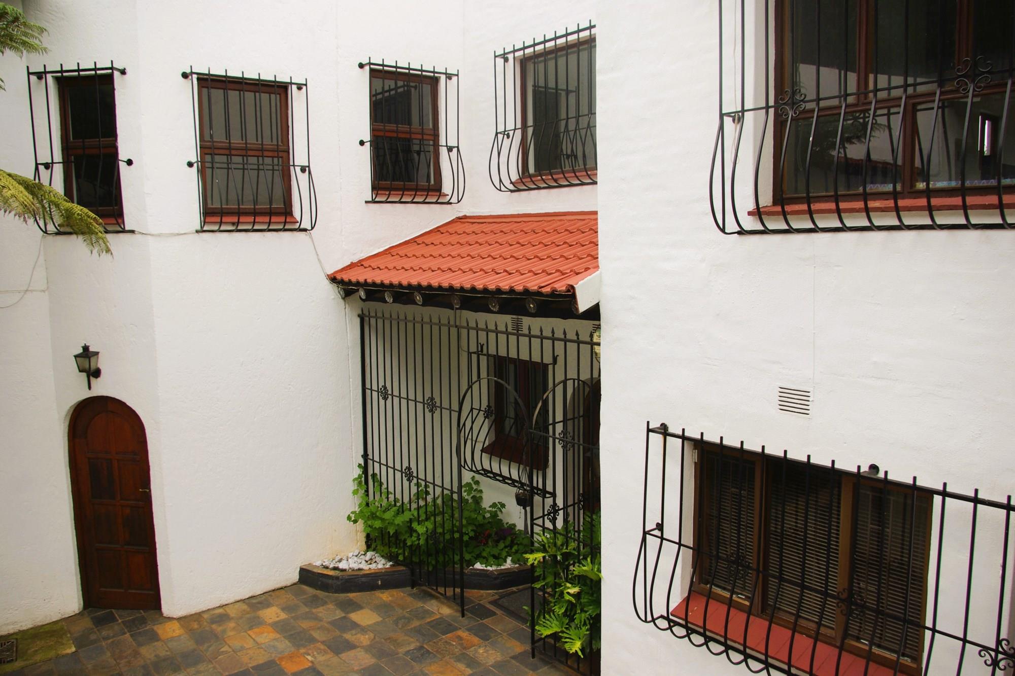 There are two flatlets and both are unoccupied. The one on the upper level: It has a door opening into the main house. It has a bedroom (5th bedroom) and a separate bathroom (5th bathroom) and a humongous lounge/dining room (49 sqm) facing the car park. The one on the lower level: It opens onto the courtyard. It has a bedroom (6th bedroom) large enough for a double bed and cupboard. It has a lounge (about 13.5 sqm) and a separate bathroom with toilet and bath (6th bathroom). Floor space: about 30sqm.