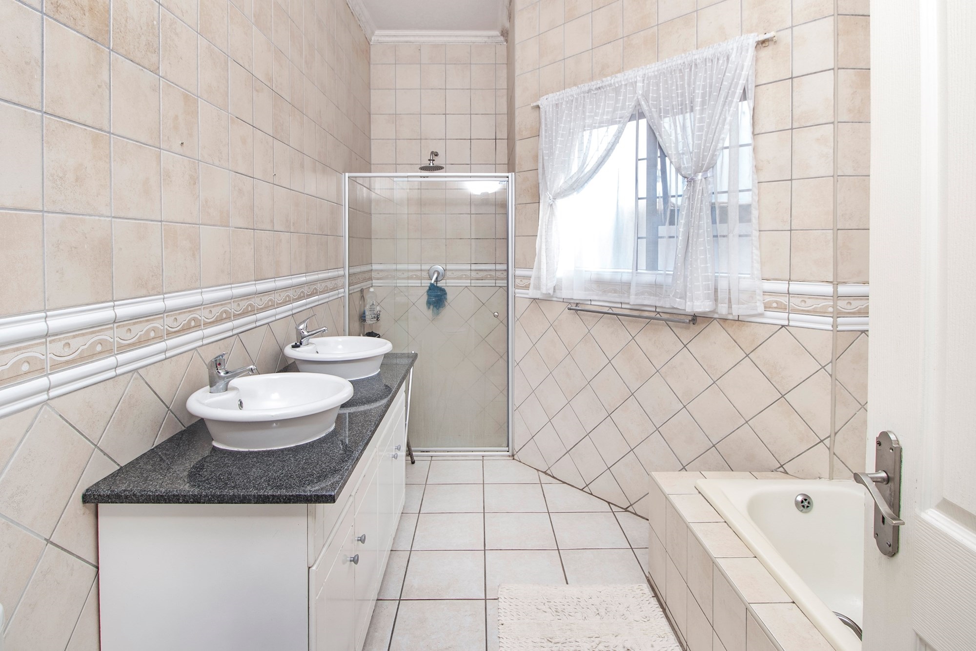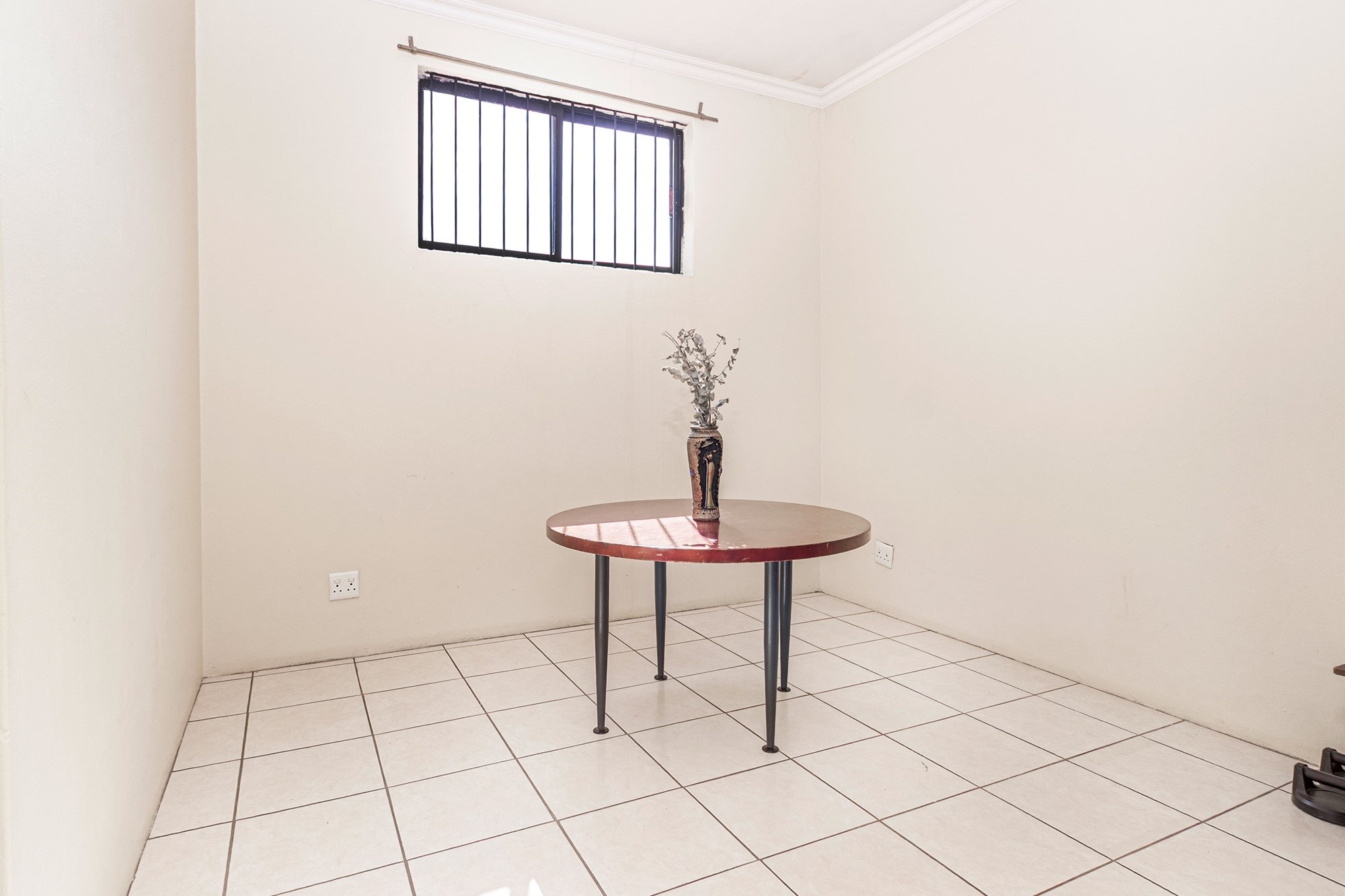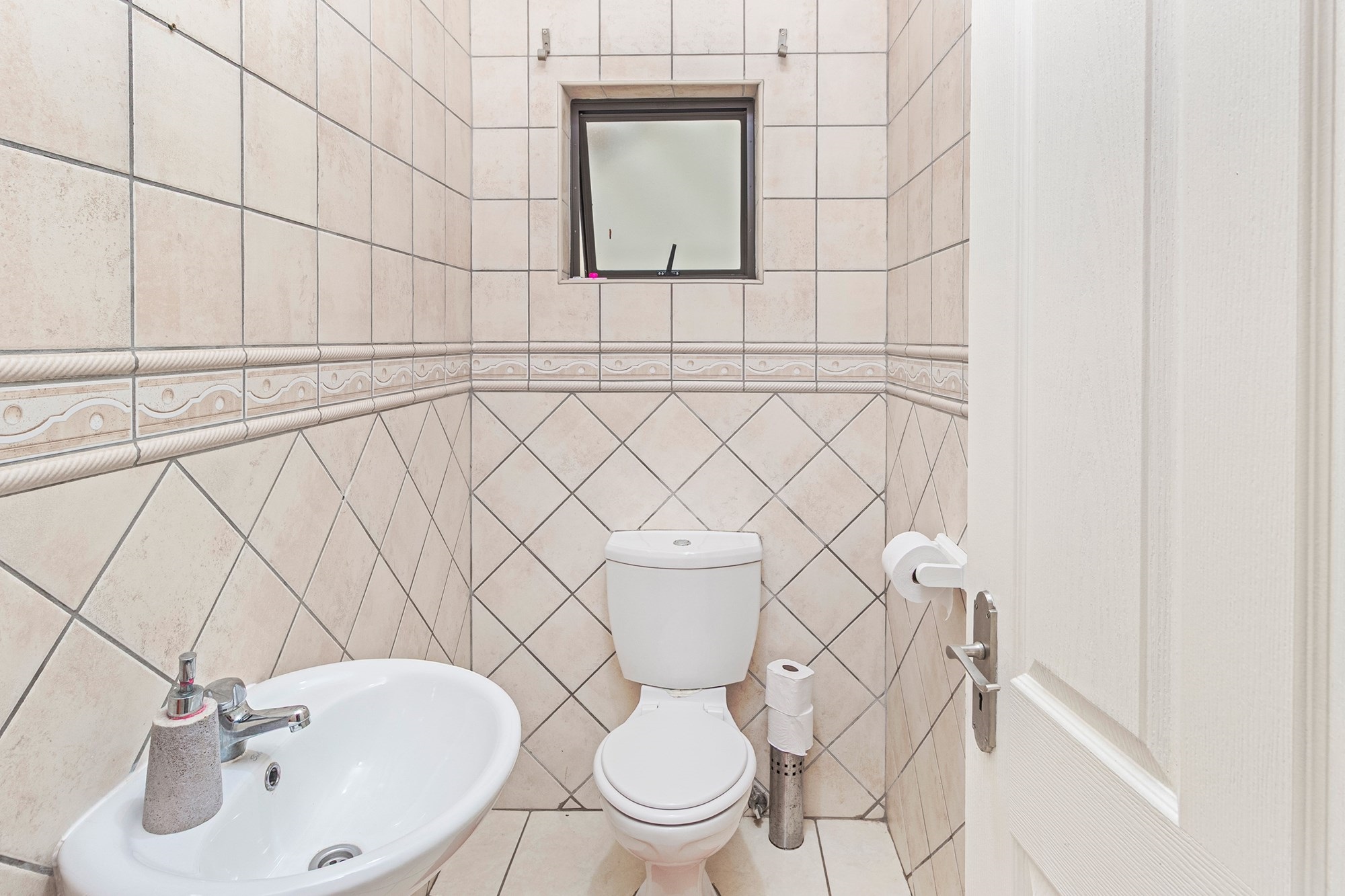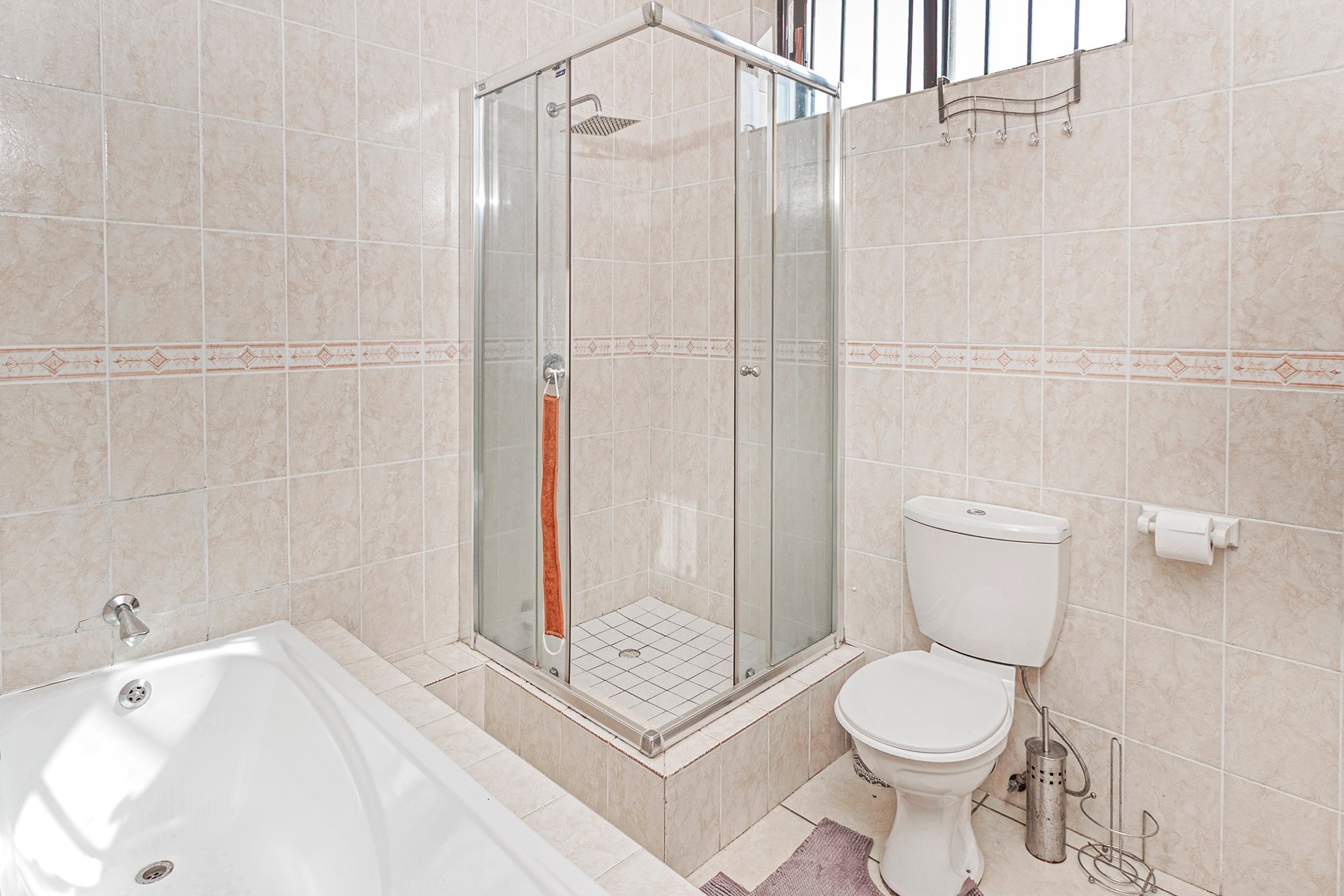 Guest toilet and a full family bathroom. Upstairs: expansive 4th bedroom with wall-to-wall cupboards, full bathroom, and additional space ideal for a pyjama lounge, office, or playroom. Fully tiled throughout. Prepaid electricity. This home is fully secured with high walls ,side gate for extra parking & a pedestrian gate not forgetting a yard for gardening & outdoor relaxation. Fibre ready