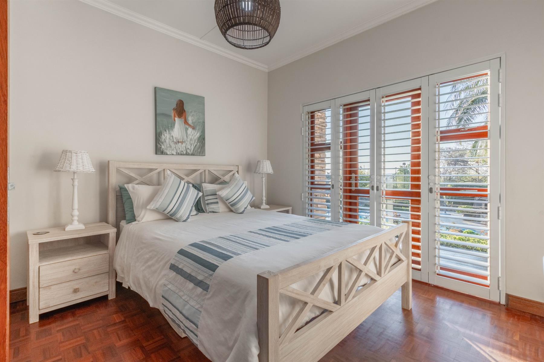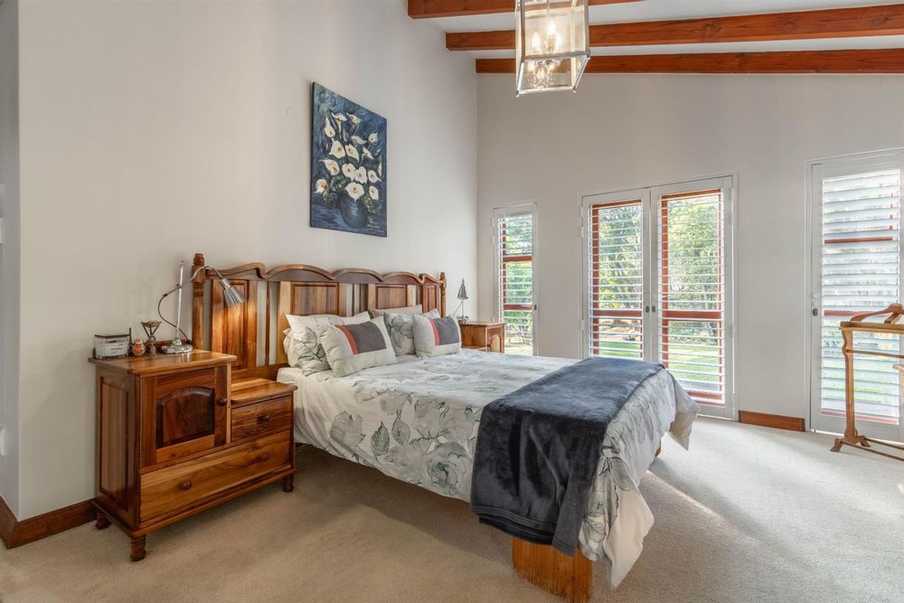 Facing north are four spacious bedrooms with built-in cupboards. French doors with security American shutters open onto the deck.