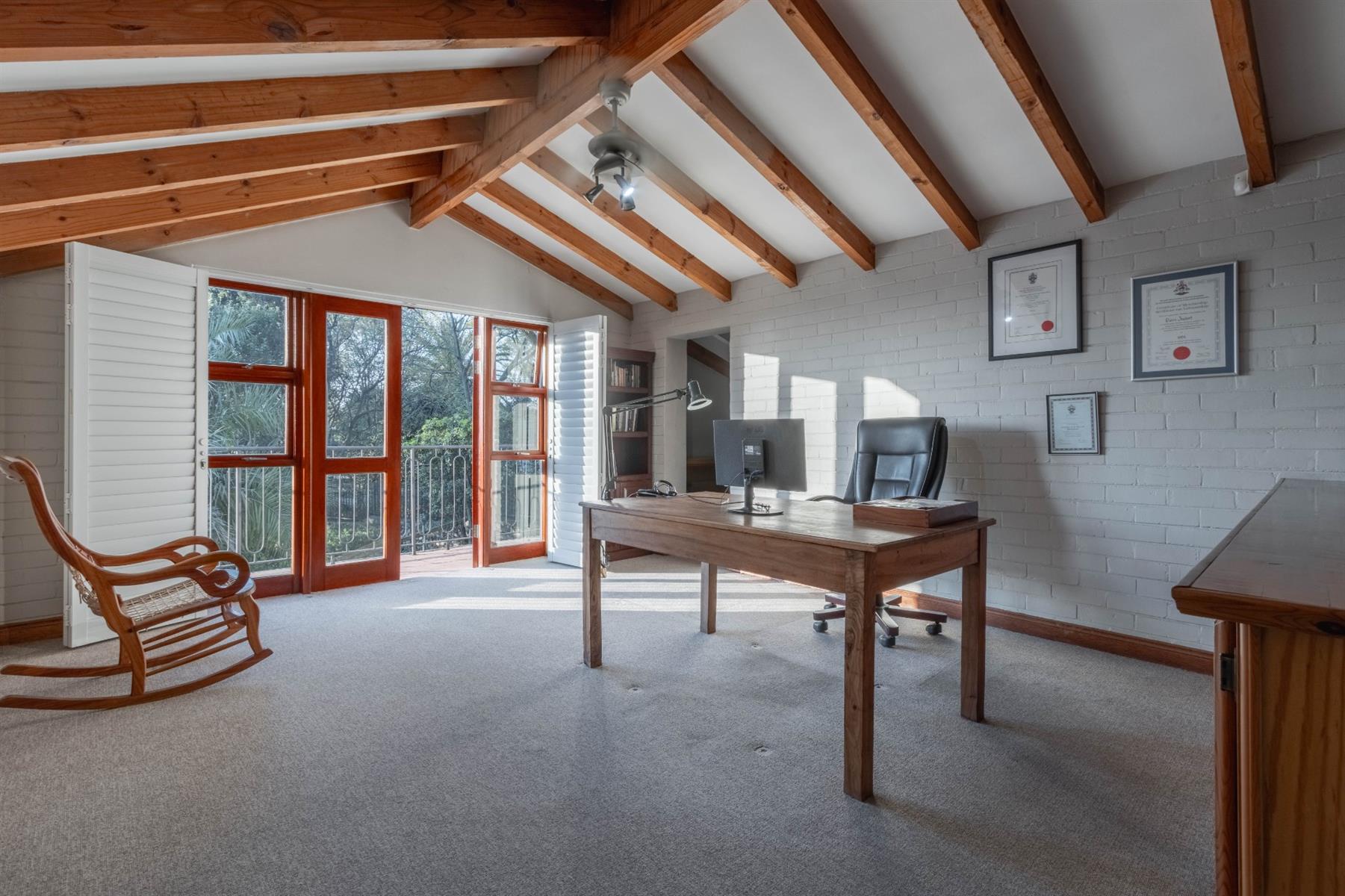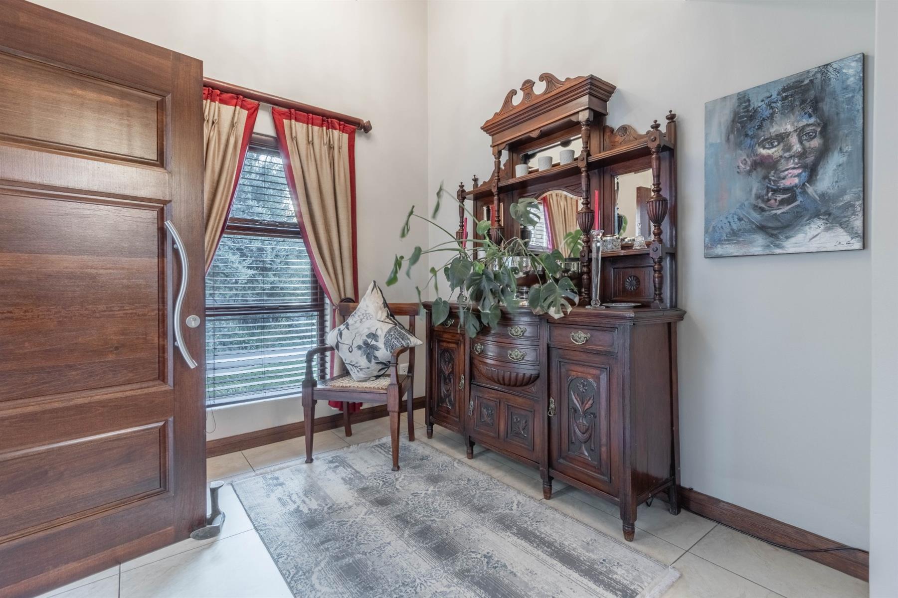 Relax and enjoy the Northcliff view and sunset from the patio. A sparkling pool, Lapa, and fire pit complement the landscaped garden (partly indigenous), which also has a tennis court with floodlights.