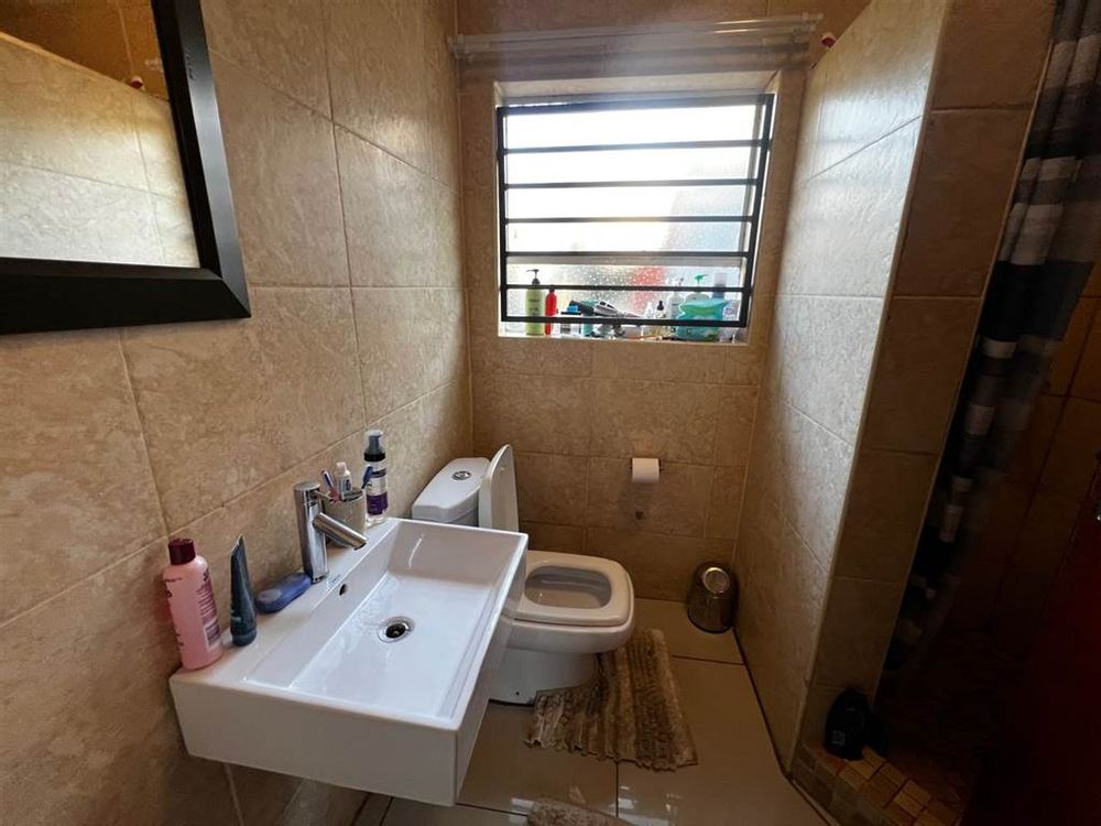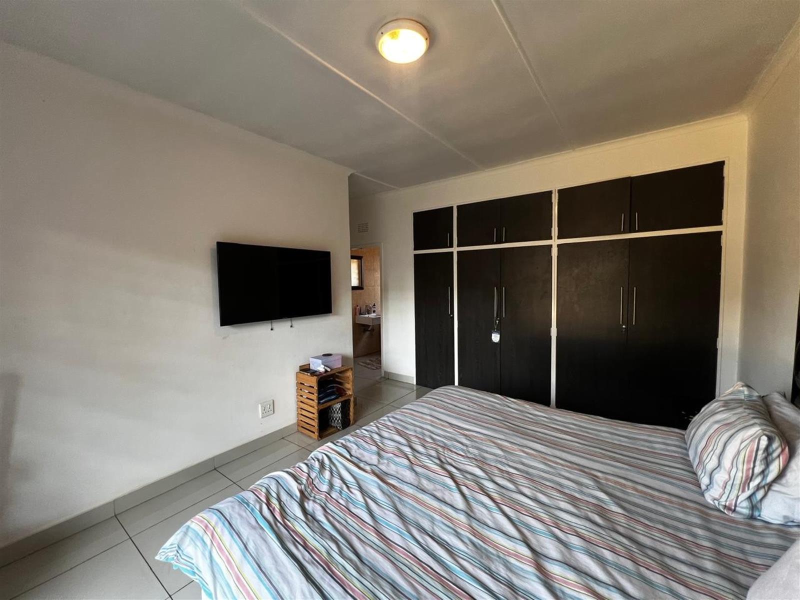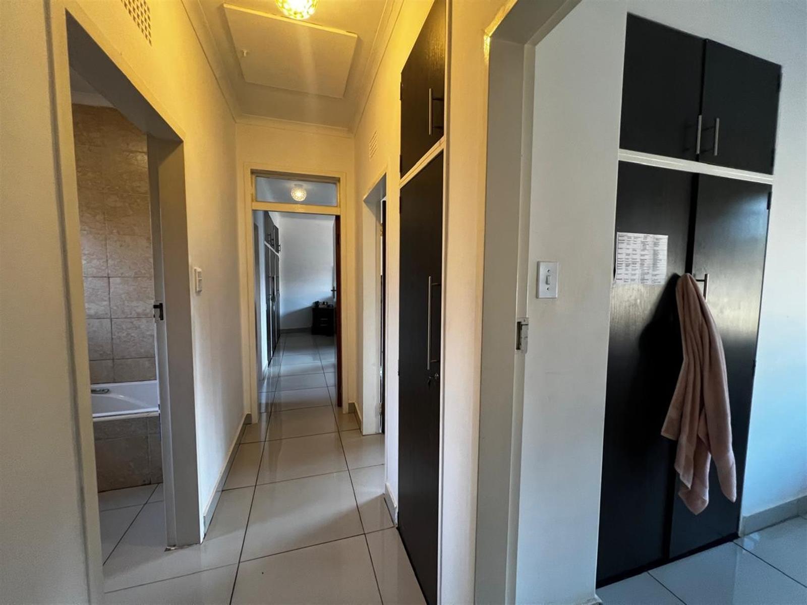 The property features three well-sized bedrooms, each equipped with built-in cupboards for ample storage. The master bedroom is a serene retreat, complete with an en-suite bathroom that provides a private oasis. A spacious bathroom with a bath tub, toilet, and basin caters to the needs of the family.
