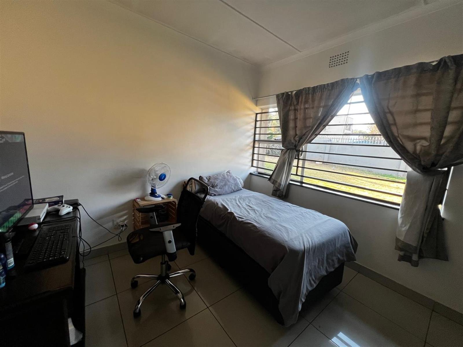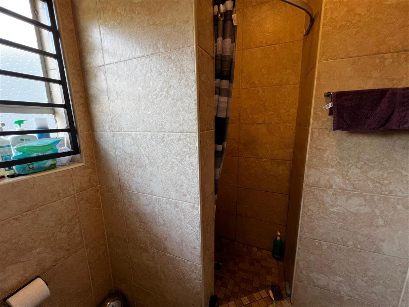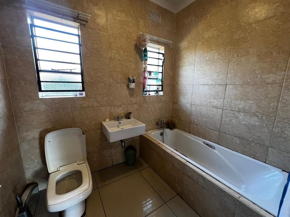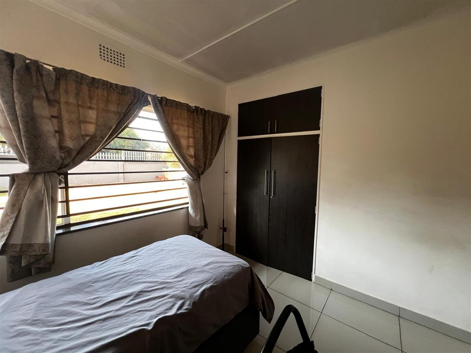 The property features three well-sized bedrooms, each equipped with built-in cupboards for ample storage. The master bedroom is a serene retreat, complete with an en-suite bathroom that provides a private oasis. A spacious bathroom with a bath tub, toilet, and basin caters to the needs of the family.