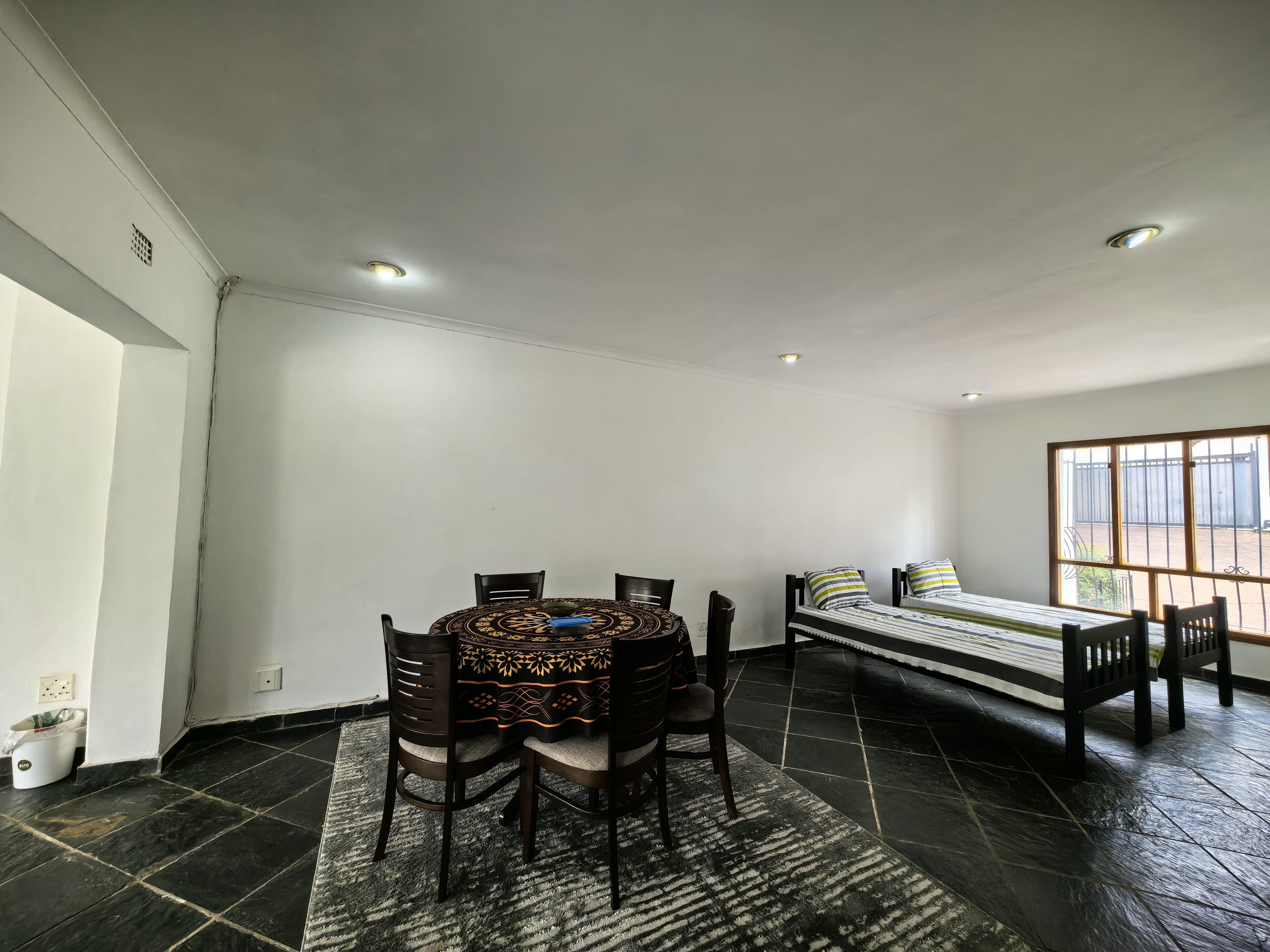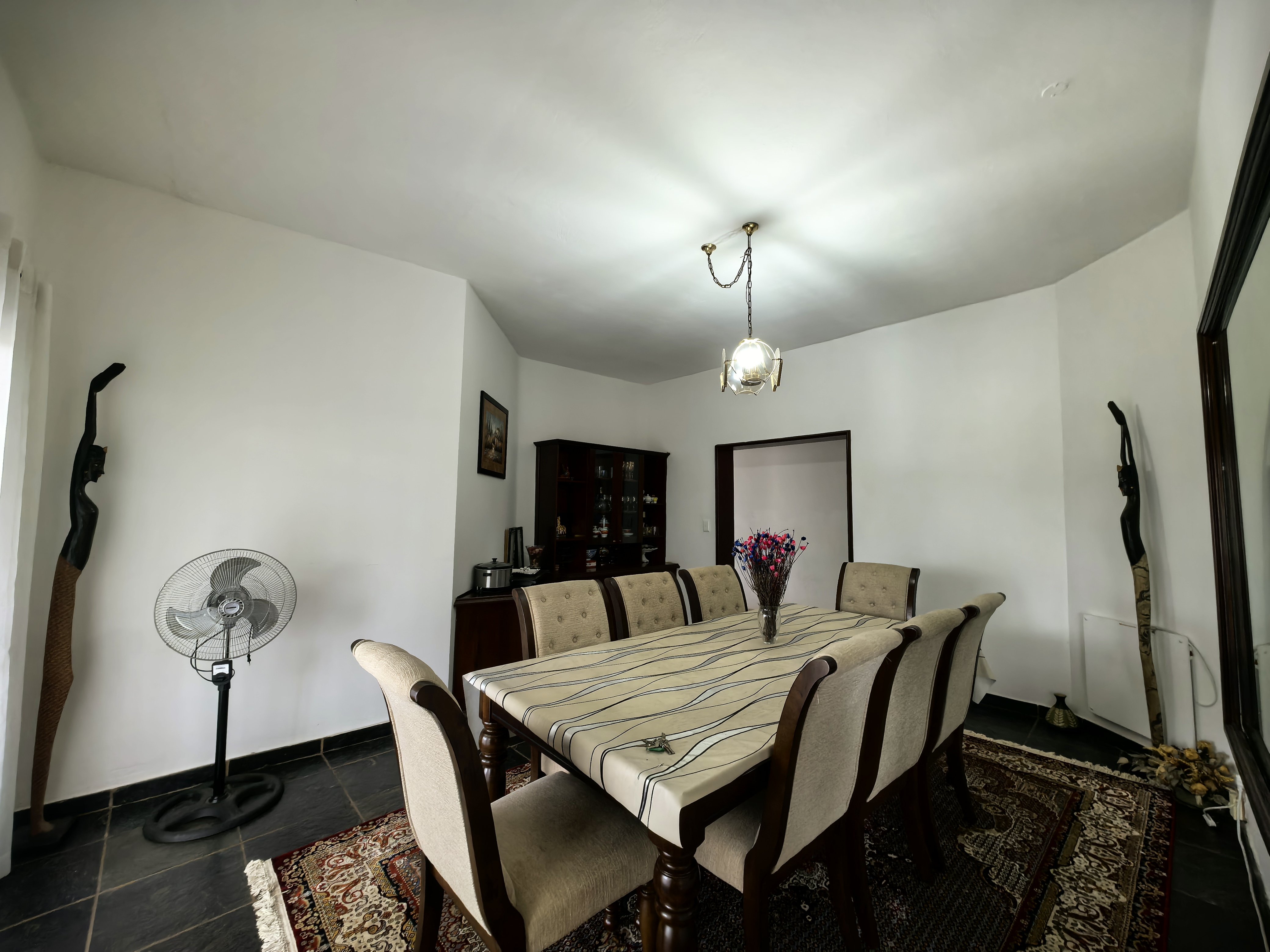 The kitchen boasts 2 cookers (gas and electric), quaintly positioned for flow. With an eat-in breakfast room, that flows into the main dinning area. Adjacent to this is the private lounge with a little hosting bar.