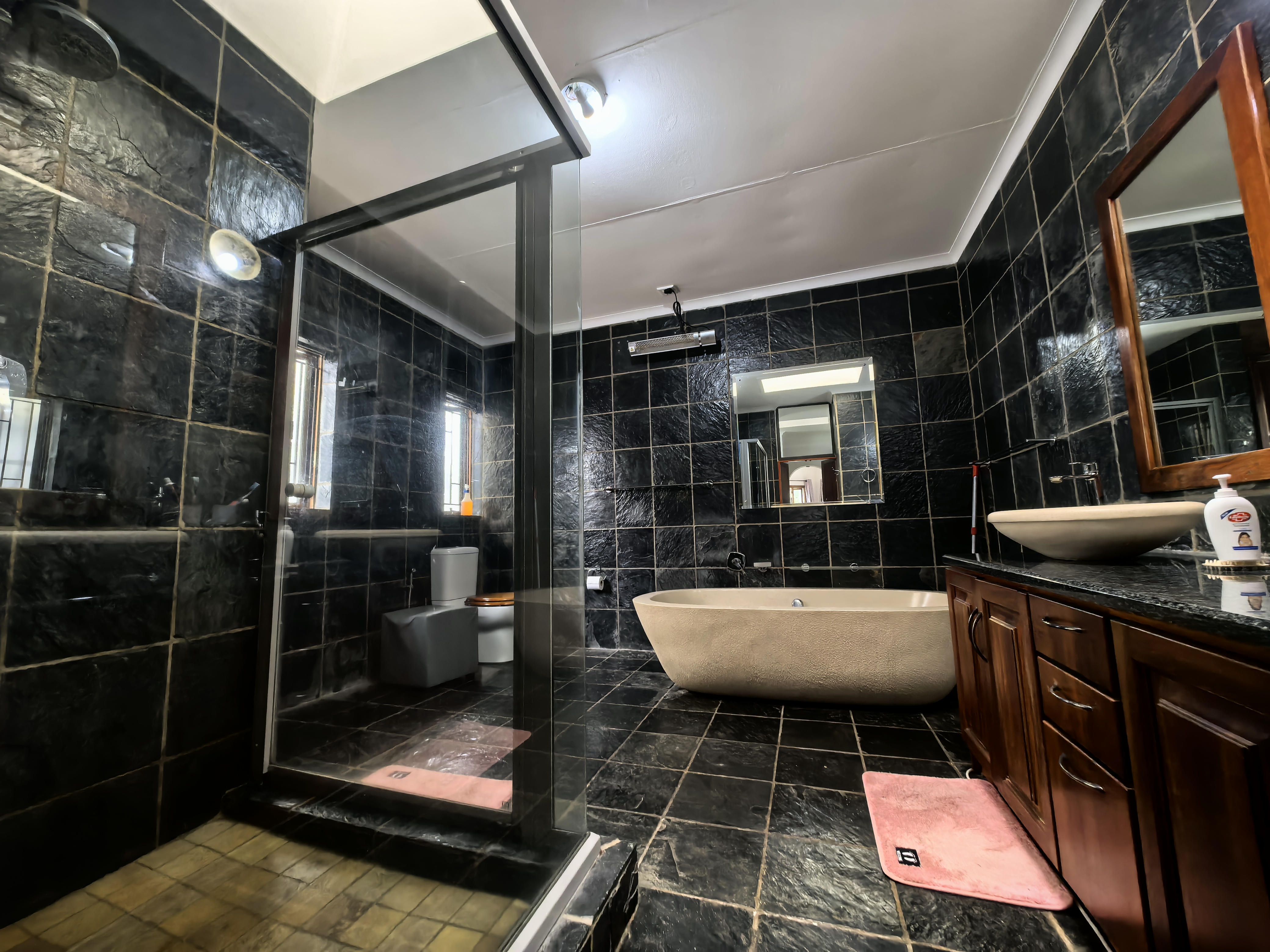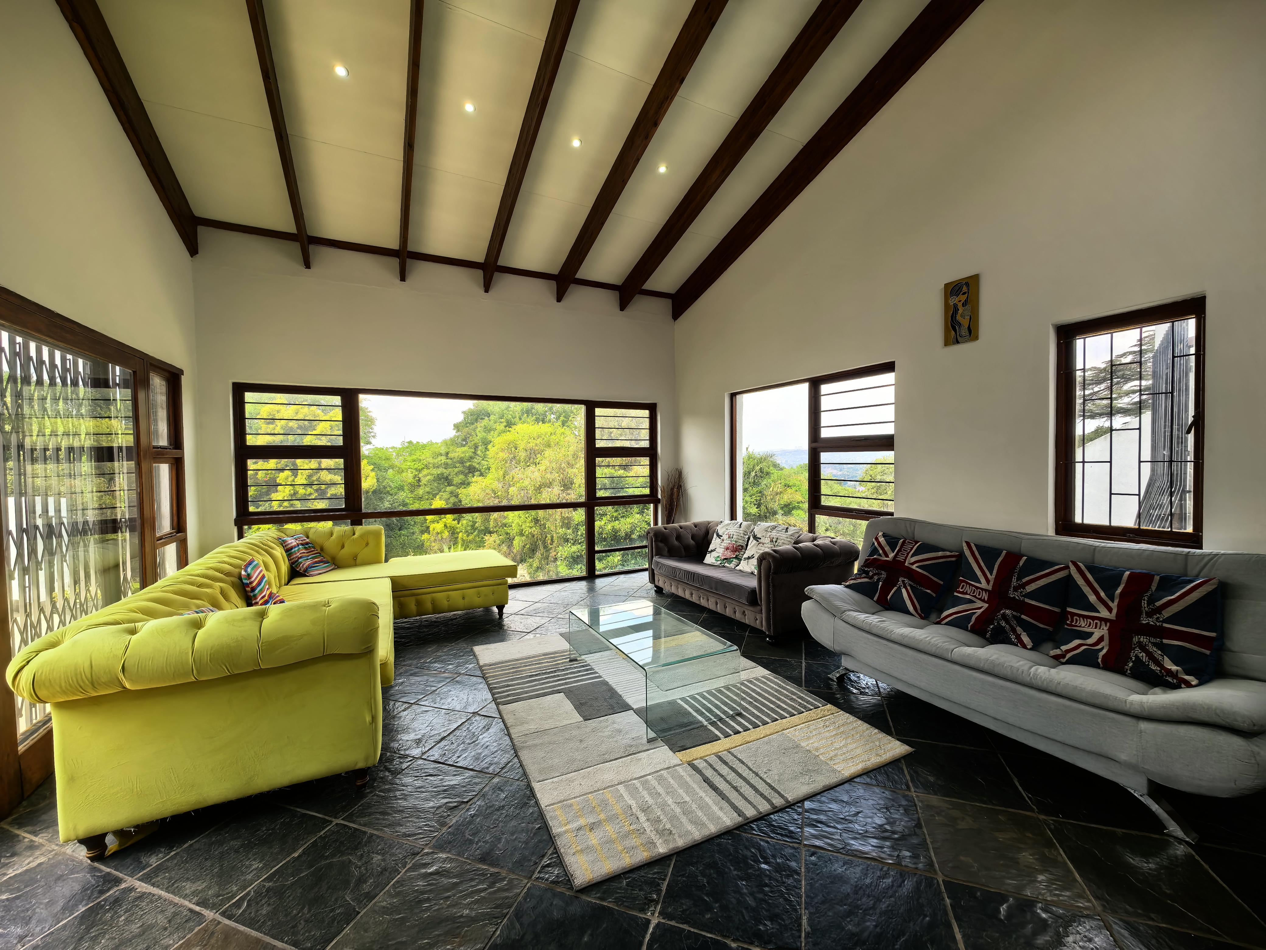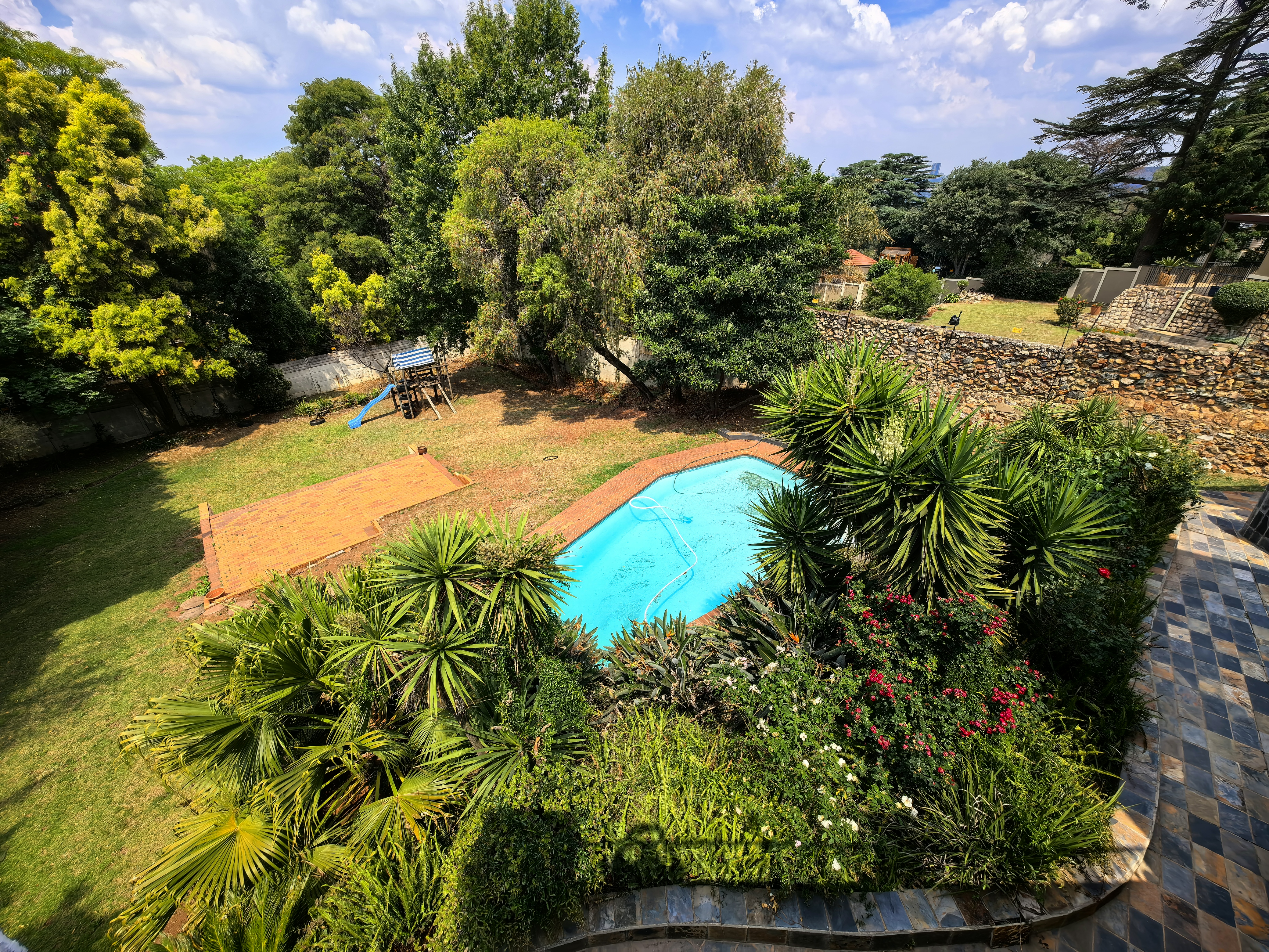Generous stand and accommodation, poised for your next journey. 5bed 5bath, (5th is a potential income generating cottage. Mum and dad can be seated on the patio entertaining, braaing while the kids enjoy the rolling grassy garden and pool area.