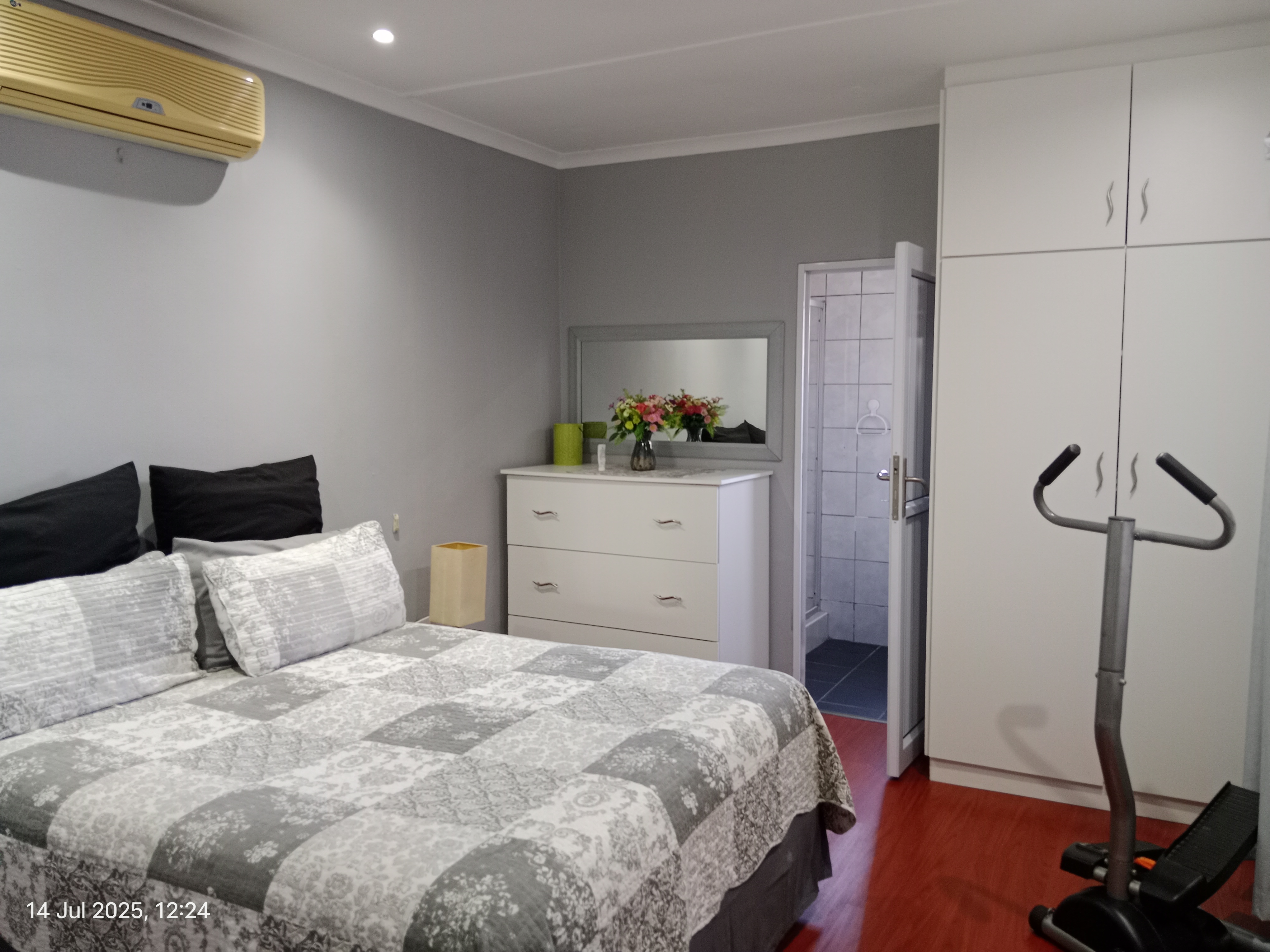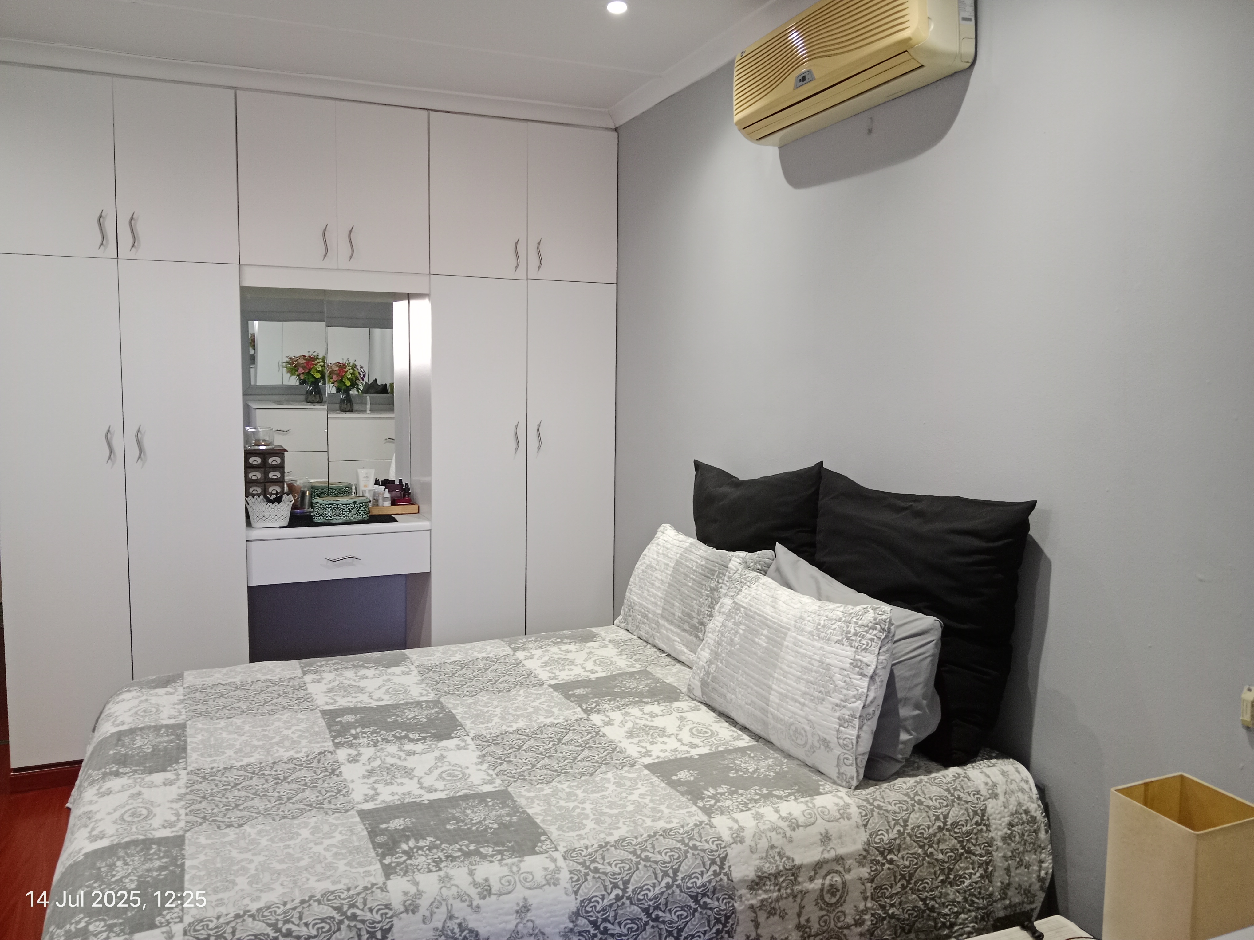 Perfectly presented and exceptionally well cared for, this charming home offers a warm, inviting atmosphere from the moment you arrive. The manicured verge and lush front garden create instant curb appeal, showcasing the pride the owners have taken in every detail. Step through the automated gate onto a welcoming front verandah, and then into a stylish lounge enhanced with laminate flooring, modern lighting, and crisp venetian blinds. The space flows effortlessly into a bright open-plan kitchen fitted with granite countertops, an under-counter oven, hob, and extractor. From here, you move into a comfortable dining area and a fitted study—ideal for professionals or those who enjoy a dedicated workspace. The bedroom wing is thoughtfully designed with three well-sized, sun-filled bedrooms complete with built-in cupboards. A neat family bathroom serves this area. A standout feature is the additional room currently used as a gym—perfectly suited to become a fourth bedroom, prayer room, hobby space, or private office to suit your lifestyle. The main bedroom offers extra comfort with its own en-suite bathroom and an air conditioner, while the lounge is also air-conditioned for year-round ease. Parking is secure and convenient with a tandem carport along the side of the home. At the back of the property, a covered multipurpose area offers the ideal spot for laundry, storage, or even a creative workspace. Security features, including outdoor beams and an alarm system, provide added peace of mind. This is the ideal property for first-time buyers or those looking to downsize without sacrificing comfort or quality. A truly well-loved home, ready for you to simply move in and enjoy. Call Zak now to schedule your private viewing!!